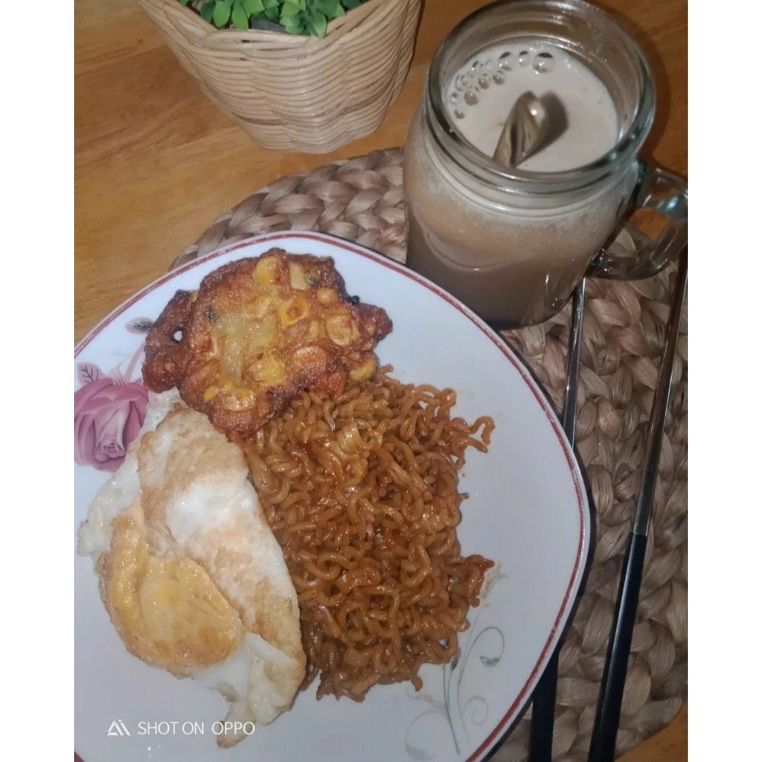 makan indomie goreng memang kurang lengkap kalau tidak ada telur setengah matang bagi sayà, sehingga setiap kali membeli indomie saya selalu membeli telur untuk di goreng setengah matang.