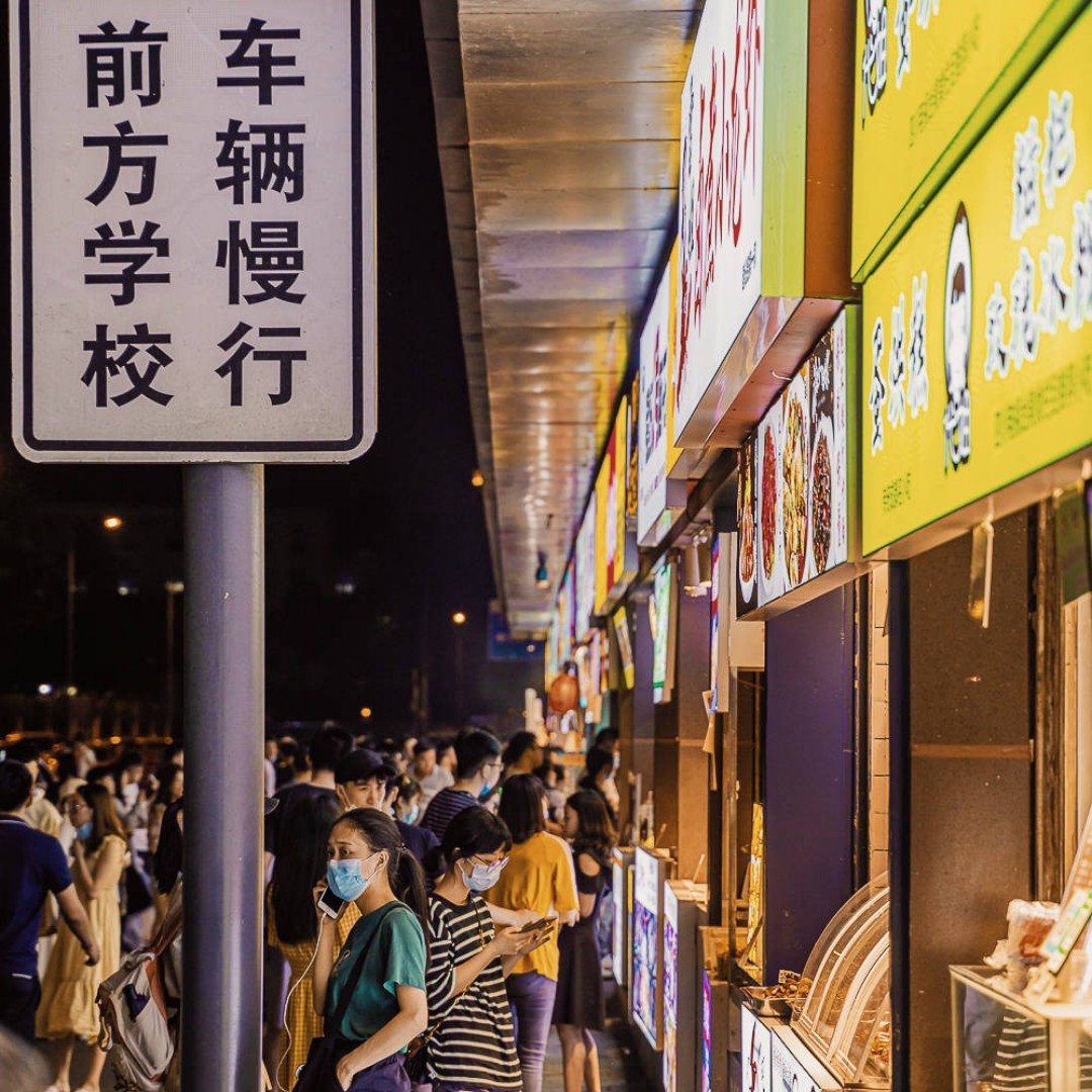 晚上的气温伴随着微风,简直凉爽到开心。在小区旁边的一个商业广场,挤满了陆陆续续出来溜达一圈的男女老少。特别是卖小吃零食的地方,简直是每个行人都要驻足的地方。