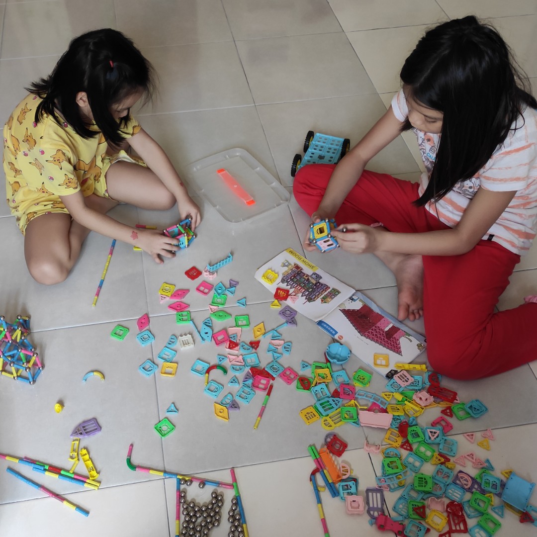 两姐妹在玩具中找到了这就的玩具。。。有磁铁的积木。。。开始盖城堡🏰。。。