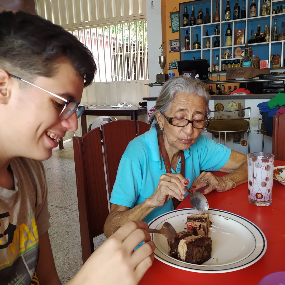 Disfrutamos de estar ahorita en familia mi mamá, mi hermano Luis, mi abuela y yo,mi abuela Está muy alegre ya que ella le encanta un dulce y más aún en la hora de la merienda es por ello que pasamos lindo rato compartiendo de la merienda en familia.