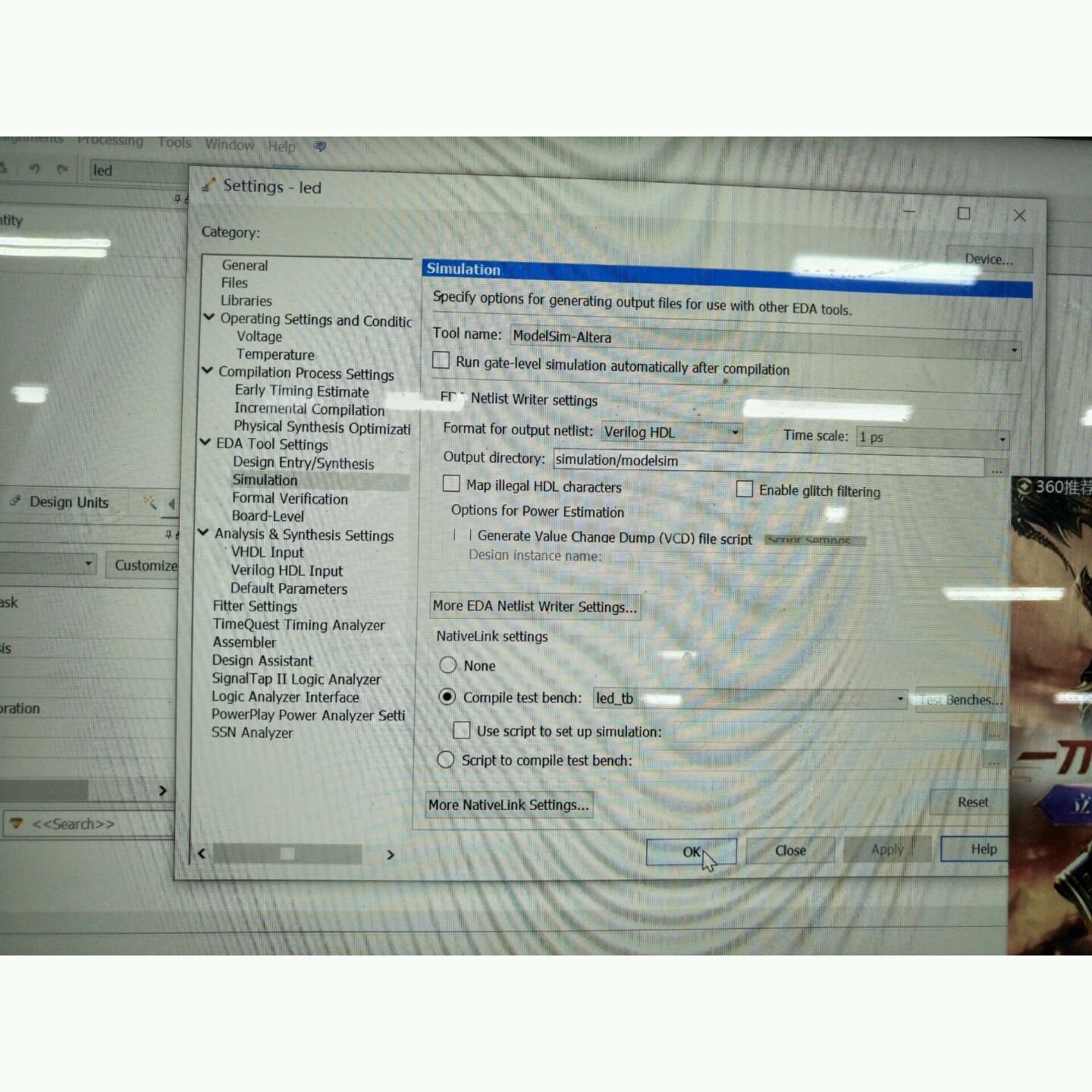 使用modelsim-altera进行仿真,需要在quartus II里指定modelsim-altera的程序路径,同时需要在assignments→settings里进行仿真设置。然后,编译,仿真,并点击RTL simulation按钮,就会自动得到RTL仿真波形。点击gate level simulation仿真按钮就会得到门级仿真波形,含有延迟和竞争冒险现象。