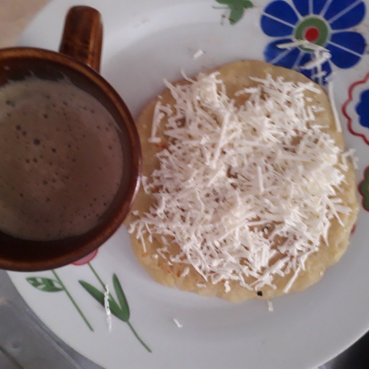 Hoy para la merienda hice unas cachapas con café con leche, quedaron muy ricas, primero las probé con queso de res, pero después le coloqué queso mozzarella y quedaron mucho mejor.