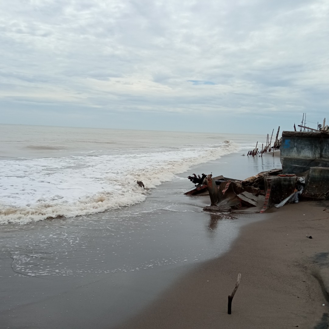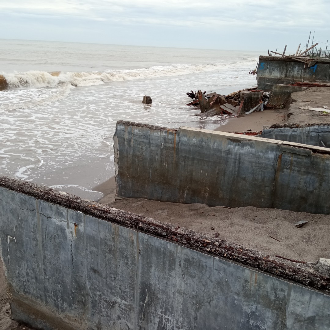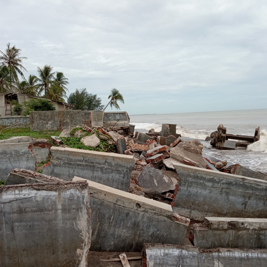 Sudah hampir 100 meter pantai Ulee Madon mengalami abrasi seperti ini. Karena perbuatan kita inilah yang menyebabkan dia ini abrasi.