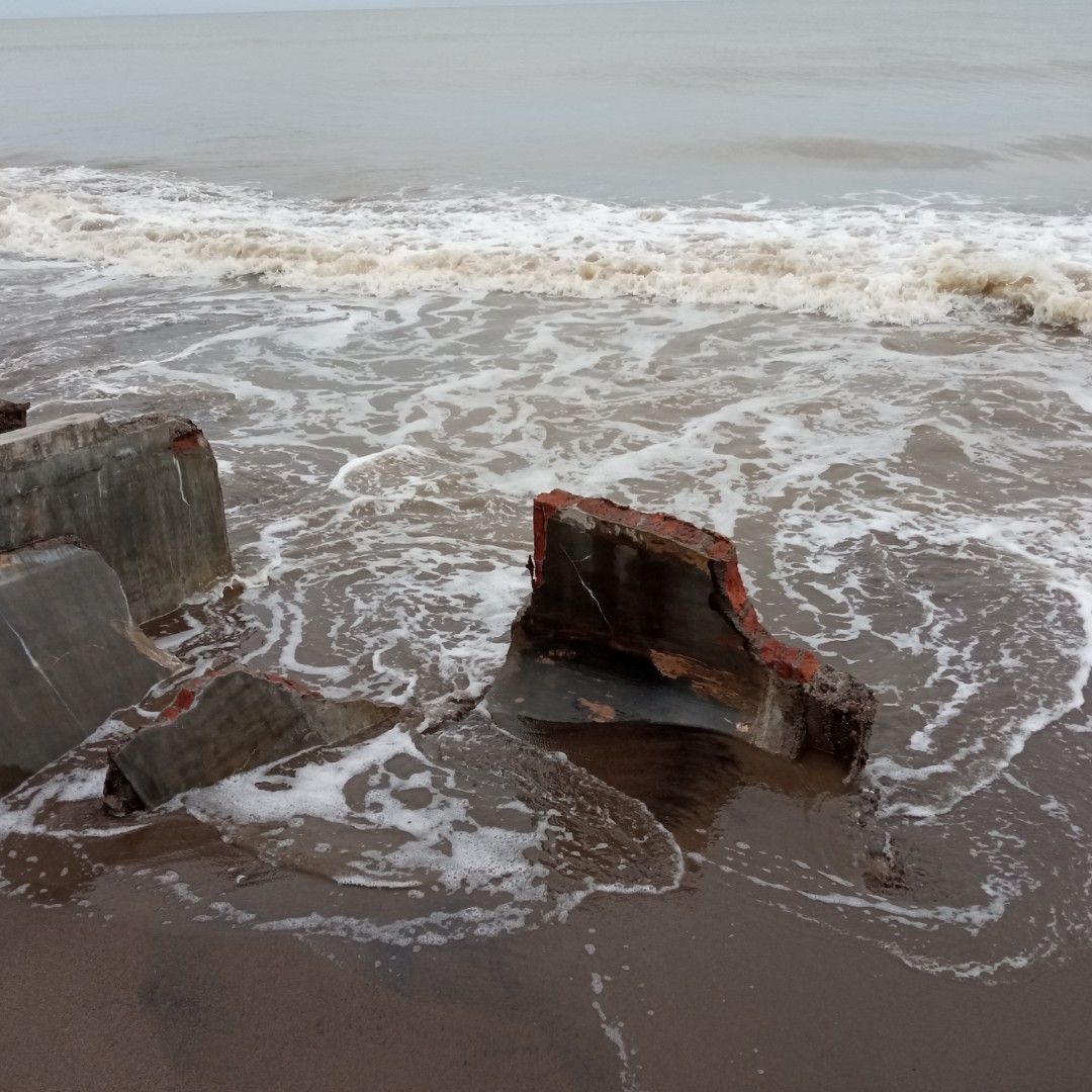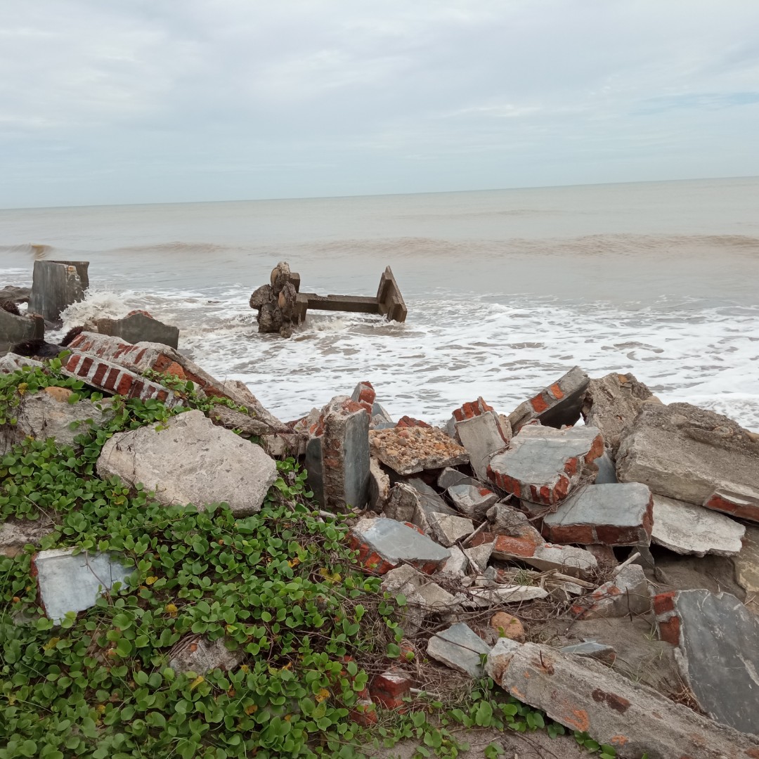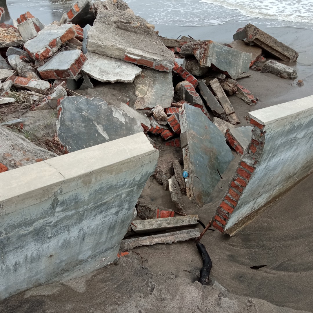 Sudah hampir 100 meter pantai Ulee Madon mengalami abrasi seperti ini. Karena perbuatan kita inilah yang menyebabkan dia ini abrasi.