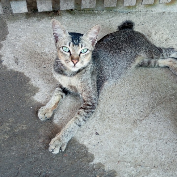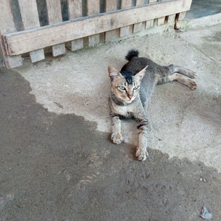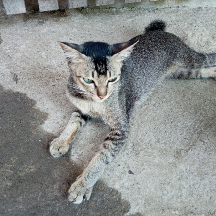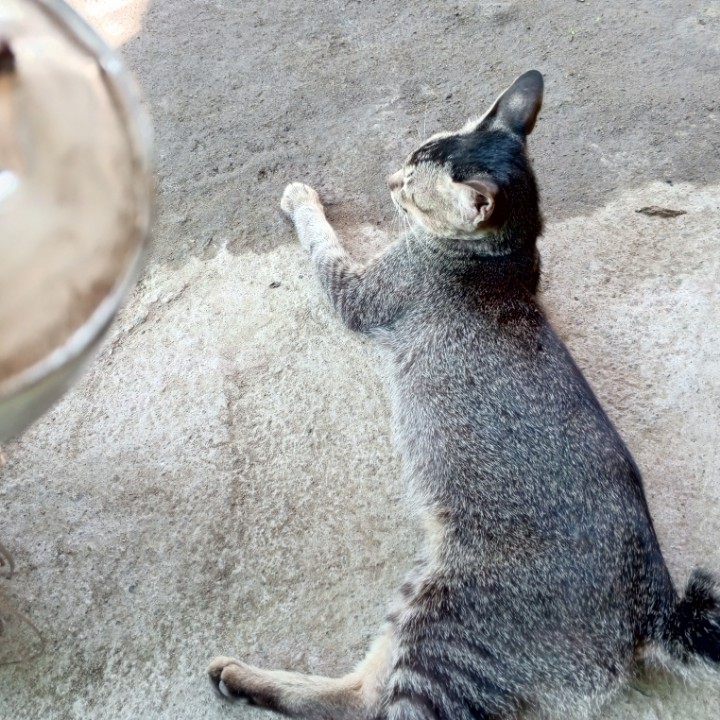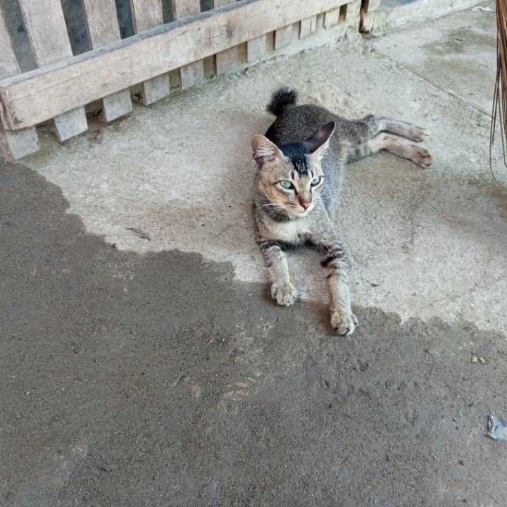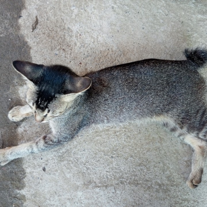 Kucing juga merasa lelah dan malas kemana-mana, kalau cuacanya panas sekali. Jadi, bukan hanya manusia saja yang kewalahan dengan cuaca panas akhir-akhir ini, seperti pada gambar yang saya bagikan kali ini, tampak seekor kucing muda yang bulunya mirip seperti tupai sedang berbaring di tanah dekat rumah. Kucing tersebut sebenarnya kucing baru dikawasan tempat tinggal kami, tapi dia tidak liar, karena saat saya dekati kucingnya tidak kabur. Mungkin karena dia lagi sangat capek, dan diluar teriknya luar biasa, jadi kucingnya pasrah saja saat saya ambil gambarnya dari dekat.