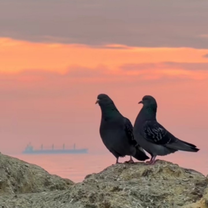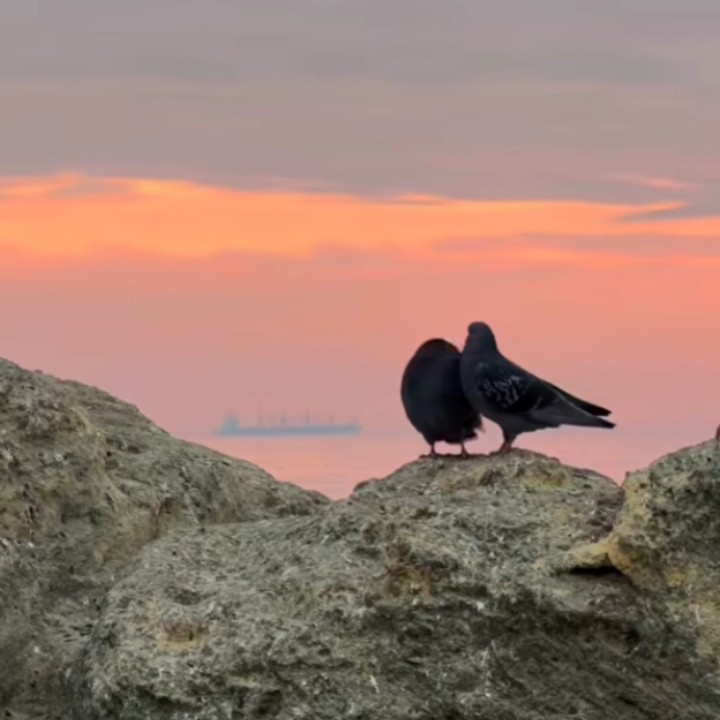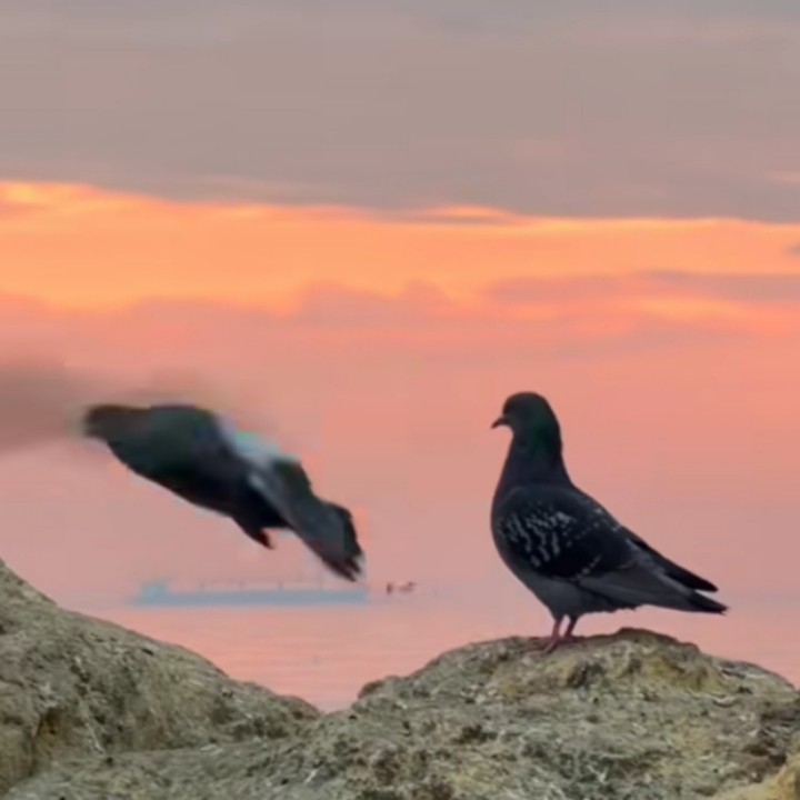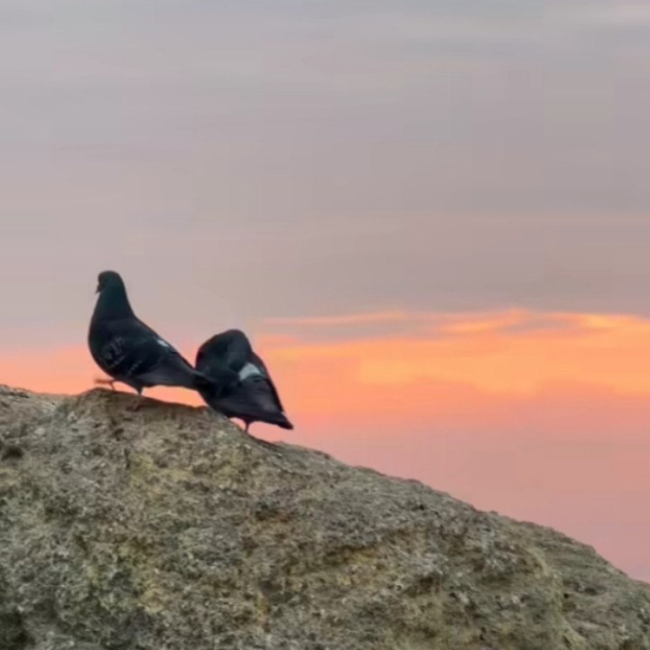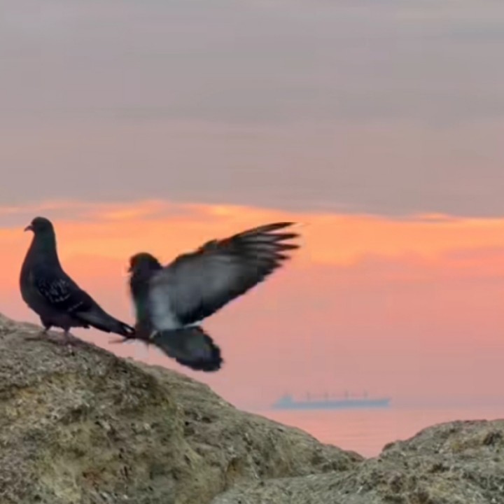 Entah darimana tiba-tiba sepasang merpati muncul diatas batu tepi pantai tempat yang biasa kami duduk untuk melihat sunset. Awalnya kedua merpati itu tampak mesra bercumbu dan akan kawin, tapi setelah mengetahui kehadiran kami, merpati tersenut merasa terancam, lalu menghindar terbang ke batu yang lebih jauh dari posisi kami yang terus berjalan ke arah batu yang akan kami duduki untuk santai. Beruntung saya berhasil mengabadikan gambar sepasang merpati yang itu yang sedang proses melakukan hubungan intim.