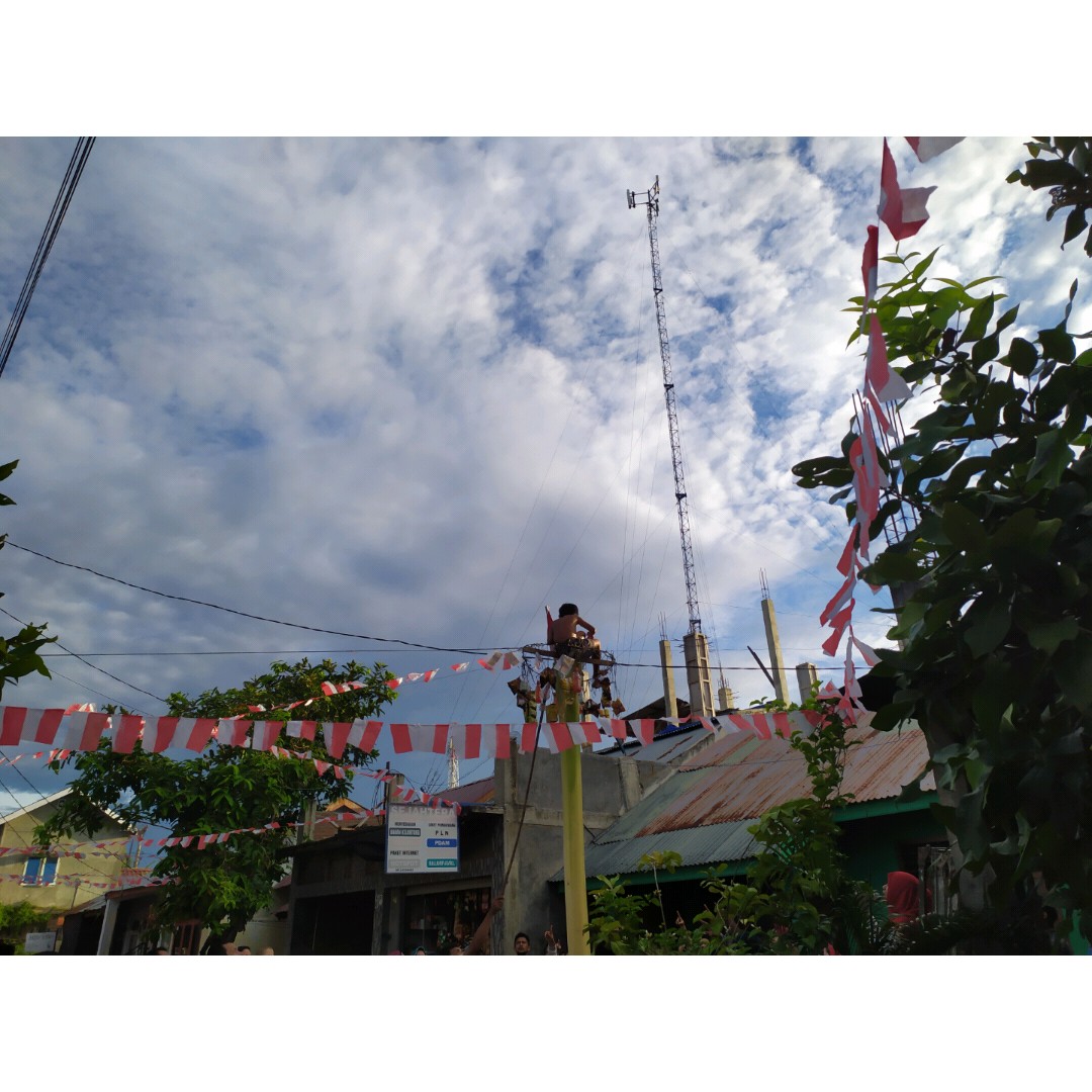 Dalam rangka memeriahkan Hari Kemerdekaan Negara Republik Indonesia desa kami mengadakan acara kecil-kecilan untuk memeriahkan hari kemerdekaan salah satunya acara panjat pisang 😂😂 kalau saya dulu pernah ikut panjat pinang. Memang kondisi pandemi ini membuat warga sedikit gelisah dalam membuat acara-acara apalagi adanya pembatasan peserta dan lain sebagainya. Namun protokol kesehatan tetap diterapkan pada acara ini.
