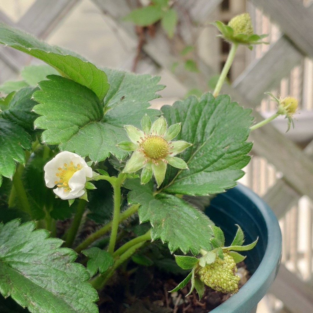 自家盆栽的草莓🍓开花结果了