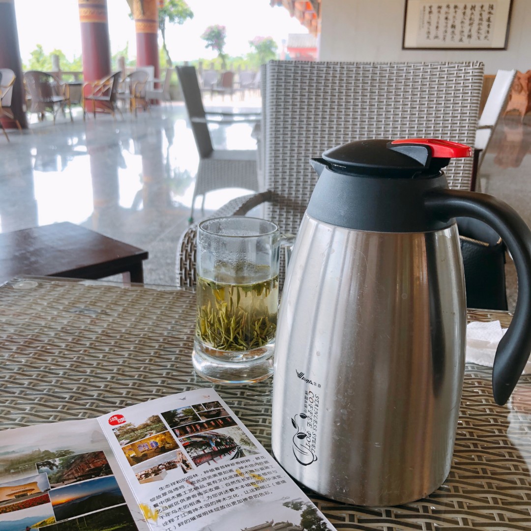 我们最后一天开完会后,中午没有回住处,和几个同事在江边喝茶,摆摆龙门阵,周围充满着桂花香。Btw这个景区内一杯茶10块,也算是良心价了。