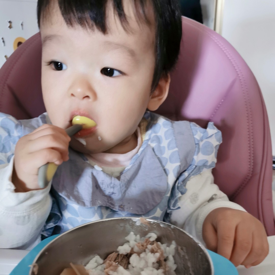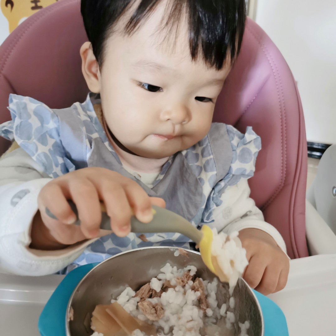 一岁一个月能自主进食已经相当棒了,惭愧啊,我家的三岁都还要辅助性喂