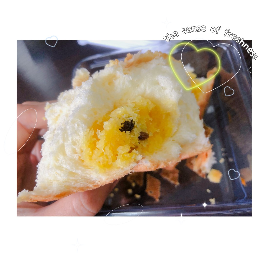 其实一点菠萝的味道都没有,只是外观像而已,里面的馅儿是我最喜欢的椰蓉,还有少许葡萄干,就是味道有点甜,再淡一点就好啦!