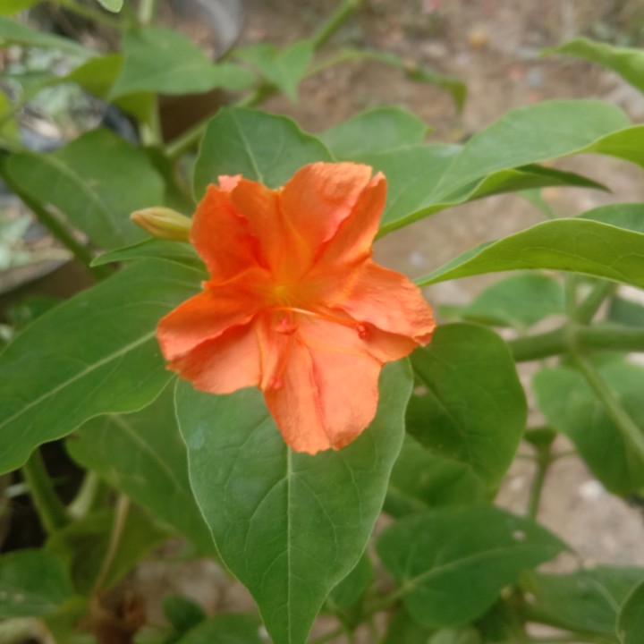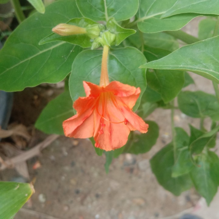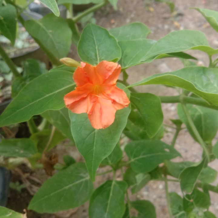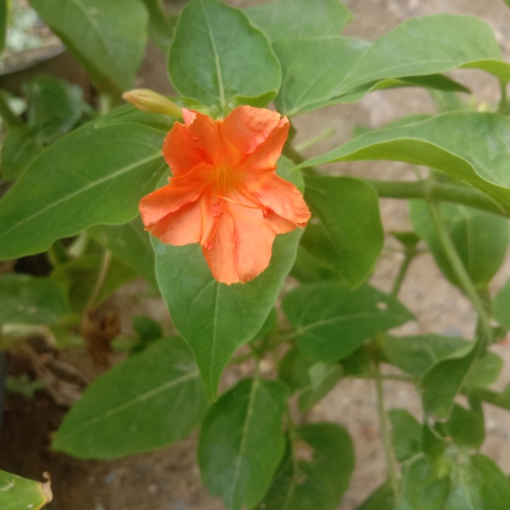 bunga ini namanya ialah bunga pukul empat dan warnanya berwarna orange, kenapa orang mengatakan bunga pukul empat, sebab bunga ini mekarnya di jam empat teman ku semua.