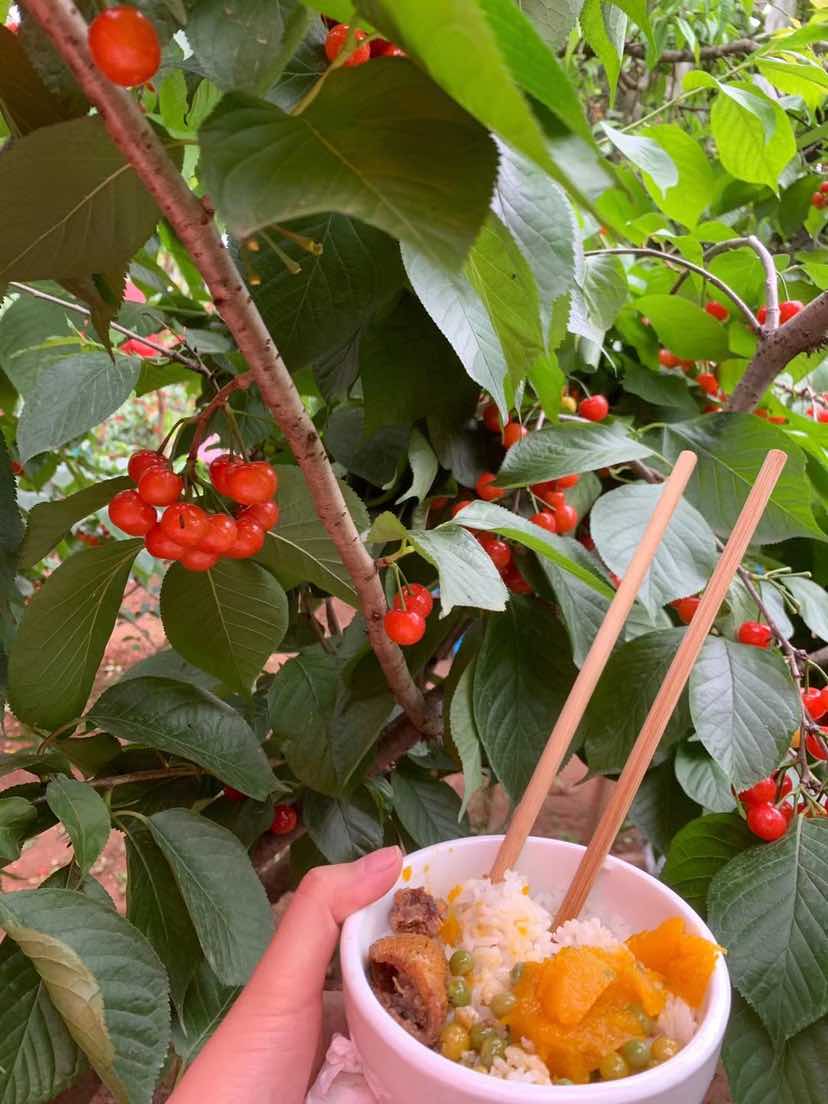 摘樱桃 公司今天包...qqj1314 (47)in #wherein • 5 years ago 摘樱桃 公司今天包几辆大巴车,去摘樱桃,为什么选星期一去呢? 就是为了错开周末摘樱桃这个高峰期,这里得老板都说没想到星期一这么多人,直接包场了,很多食材没来得及准备,就又是杀鸡,杀兔,又是土里摘菜。今天的天气很不错,不算太热的太阳,随手摘也吃不完的樱桃,还有已经开始结果的桃子,上个月看桃花林也是在这里哦。 #hive-193186 #funny #writing #life #photography #cn #blockchain #learning #fruit