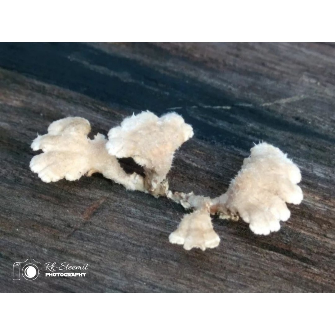 ini adalah jamur yang tumbuh di sebuah balok kayu dan jamur ini bisa di konsumsi.