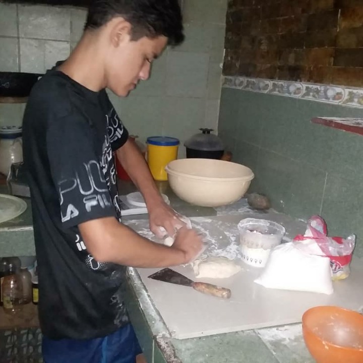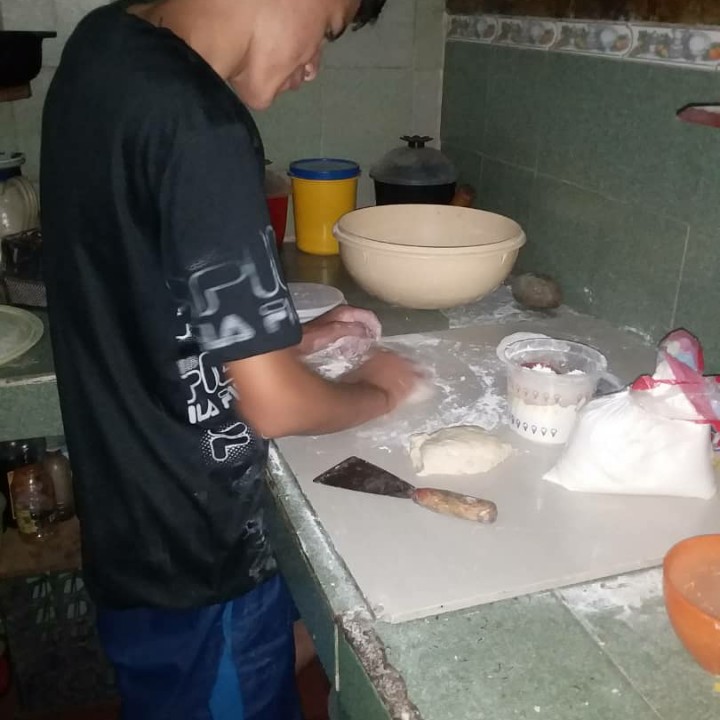 Me levanté como a las 4 me duche y me cambie de ropa, me tuve que poner una gorra porque empezamos mi hermano mayor y yo hacer las masas para pizza, empezaron hacer pedidos temprano gracias a Dios.
