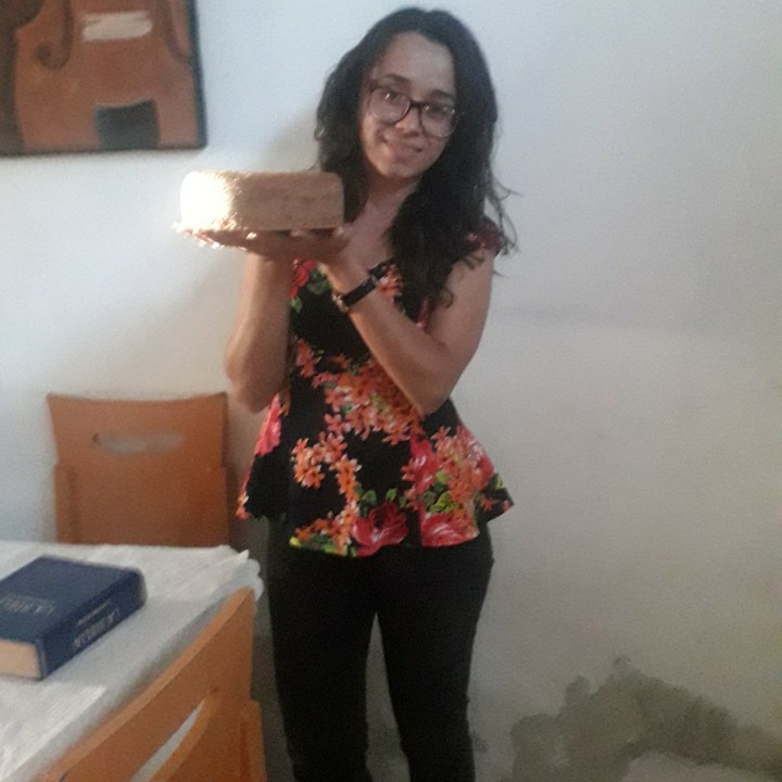Hoy me levnte a las nueve me hice mi aseo personal tendi mi cama y comi arepa con queso y me acoste porque mi mamá fue con mi hermano @elieva para el odontólogo. como a las 12 almorzamos arroz con pollo en salsa y plátanos frito y me puse a jugar con mi hermano @elieva, me fui para el patio como le compraron un piscina a mi sobrino fui para verlo y estaba con mi hermano eduardo y con mi hermano @elieva, me puse a jugar ludo club con mi mamá un rato mi cuñada @sakurarte me pidio un favor para que tomara una foto porque hizo una torta con ralladura de limón para vender.