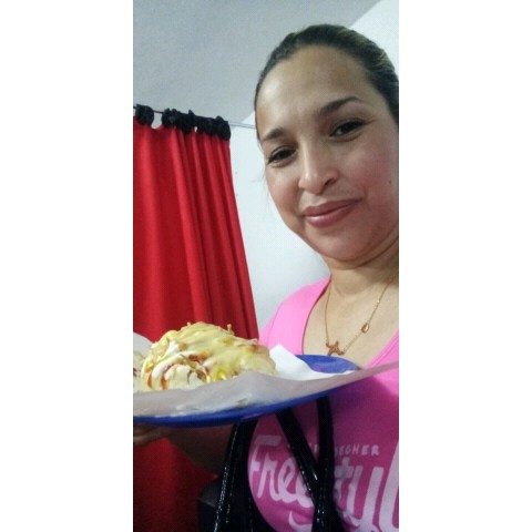aquí con un rico perro caliente gratinado, que me dieron para el almuerzo, más bueno... hoy salí a hacer varias diligencias con mi hija y la pasamos muy bién que disfrutamos al máximo cada deligencia.! y al llegar a la casa cerramos con un rico postre...Un gran saludo muy cordial mi gente hermosa.!