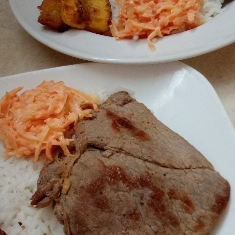 Hola mi gente hermosa de Wherein, el día de hoy me puse a organizar la ropa, que iba a lavar en esté maravilloso día, las selecciones por color, para empezar a lavar, un poquito de ropa, empecé primero con las camisas del uniforme de mi esposo, después me fui a la cocina a preparar el almuerzo, donde hice un arroz blanco, busque dos bistec para colocarle bastante ajo, con bastante aliño, para luego poner en el sartén, para hacerlo asado, después hice una ensalada de zanahoria con mayonesa, busque un plátano para hacerlo frito, para complementar con el menú del almuerzo, busque dos platos para servir, comer y empezar a trabajar lavando, toda la ropa, aprovechando que tengo agua.