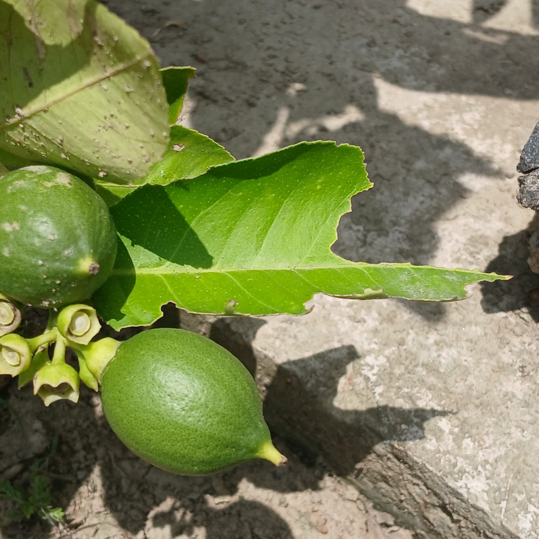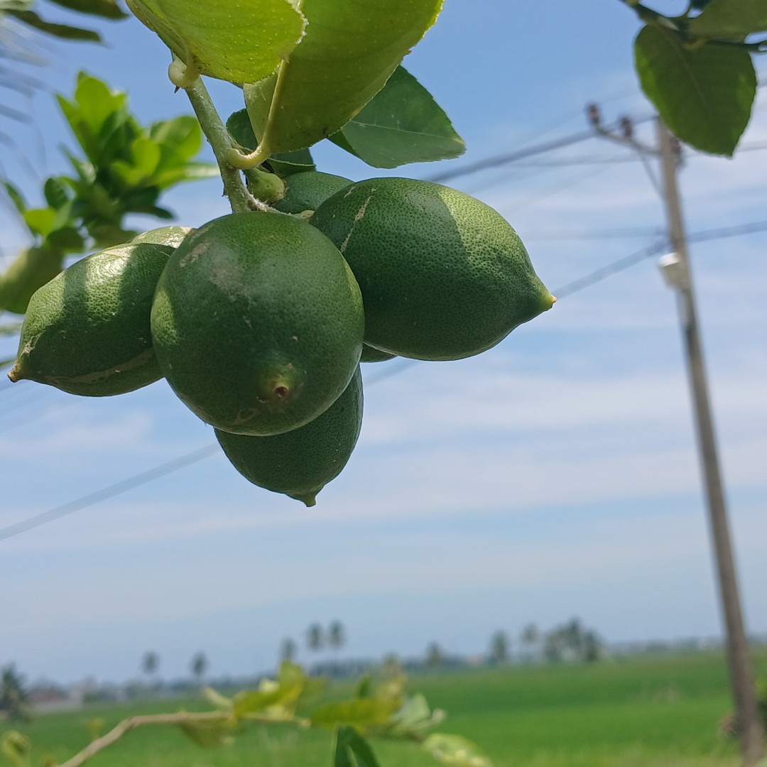Buah lemon yang masih kecil yang hampir menyerupai buah jeruk nipis, namun untuk katagori buah lemon belum memilik air sama sekali untuk buah lemon yang masih kecil ini.