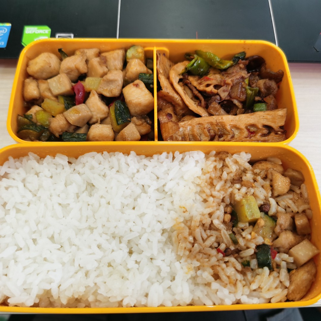 今日分便当sakura23 (56)in #wherein • 5 years ago 今日分便当 最近在外面吃已经不知道吃啥了,就开始自己带便当 做了一个宫保鸡丁和笋子炒肉,宫保鸡丁的汤汁淋到米饭上真的超好吃!赞 [WhereIn Android] (http://www.wherein.io) #cn #wherein-daka
