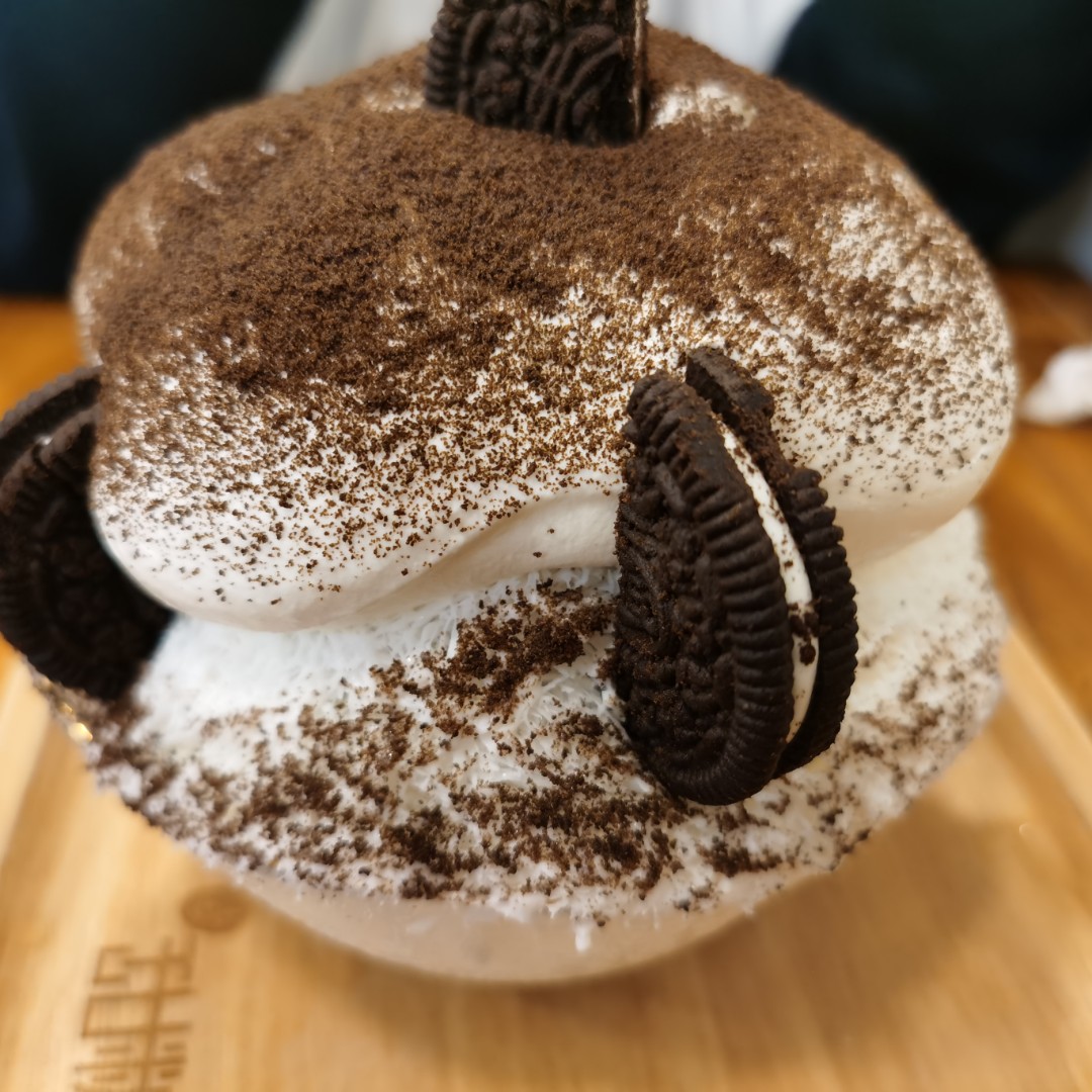 P5:momo甜糖铺的奥利奥胖达雪,上面是一层厚厚的奶油,下面是沙冰,还有一些布丁打底,适合比较喜欢吃甜的人,我个人觉得吃多了会有点腻,但是我朋友很喜欢