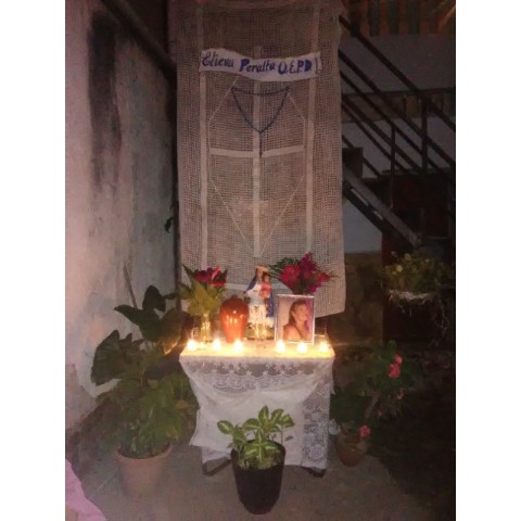 Hoy no trabajé en la venta de garage, porque estábamos con los preparativos de la última noche de mi suegrita. Terminé de pintarlo, lo recorté y ayudamos a hacer el altar junto a los vecinos más cercanos, la comunidad es muy unida y ayudaron a traer las cosas que faltaron.