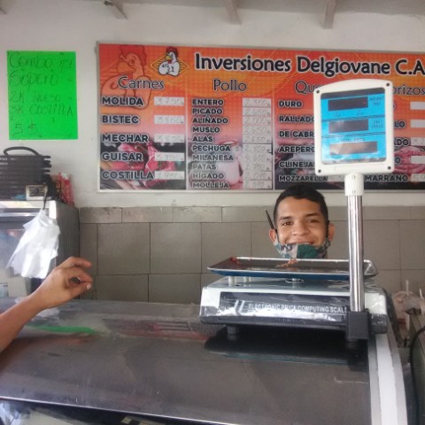 Todas esas cosas faltantes, compré una parte en la Carabobo ( imagen 4: comprando carne y pollo en el Frigorífico Inversiones Delgiovane )y otras mi esposo las compro en el centro.