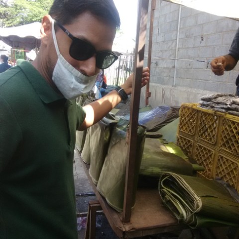 ✓ Hojas para hallacas. (imagen 3 : mi esposo Eduardo, comprando las hojas frescas para las hallacas en el mercado Barrio Unión).