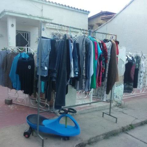 A las 3 pm saqué la venta de garaje, ( imagen 5 y 6 : Mi pequeña venta de garaje, con gran variedad en ropa y calzado, para niños, damas y caballero, nuevo y usado en buen estado, juguetes y artículos para el hogar, todos a buenos precios, desde 1$ hasta 10).