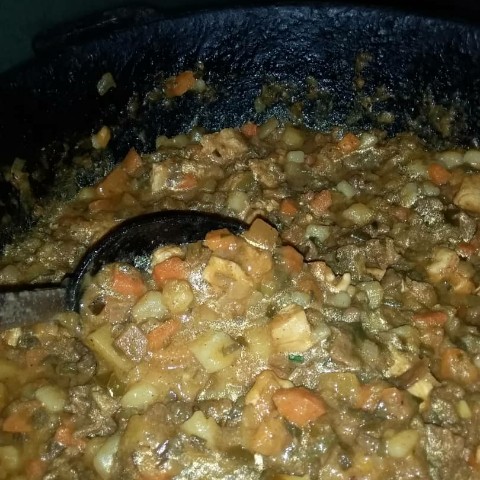 Lavé los platos, luego lavé las hojas ( imagen 3: @Sakurate lavando las hojas para las hallacas). Mi esposo preparó el guiso y pico los vegetales ( imágen 4: guiso para las hallacas)
