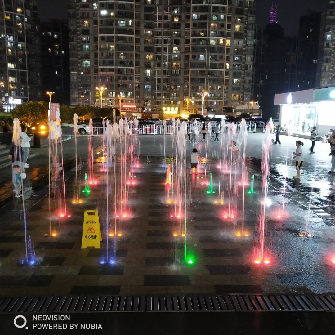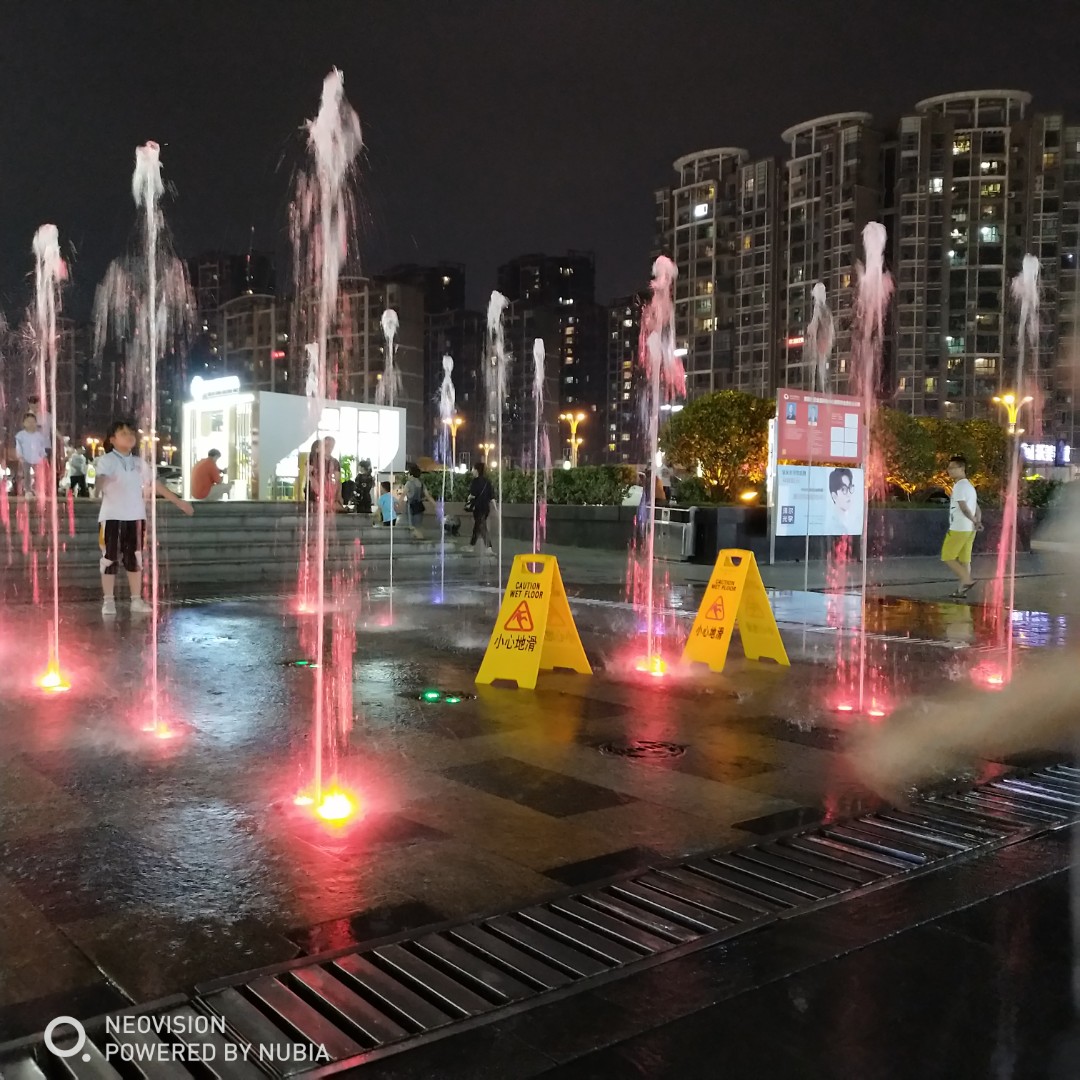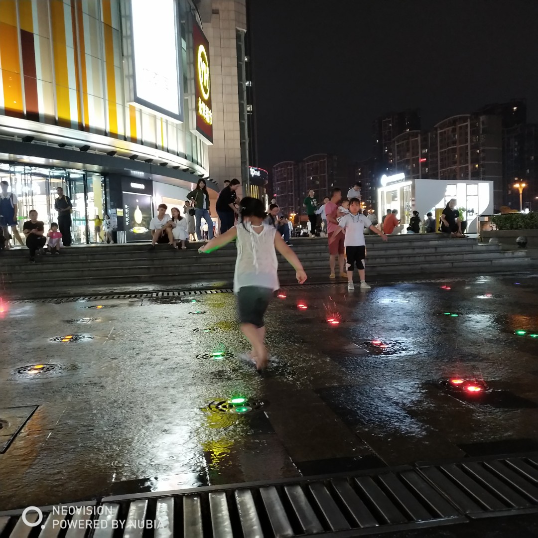 看见超市外面有块空地上有喷水,他特别开心。