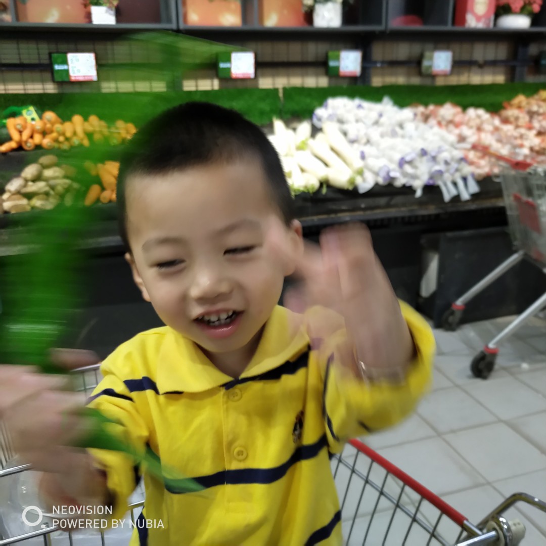 永辉超市里小吃区,水果区,琳琅满目的吃的,他也只是看着开心,也没说要买这个要买那个的。