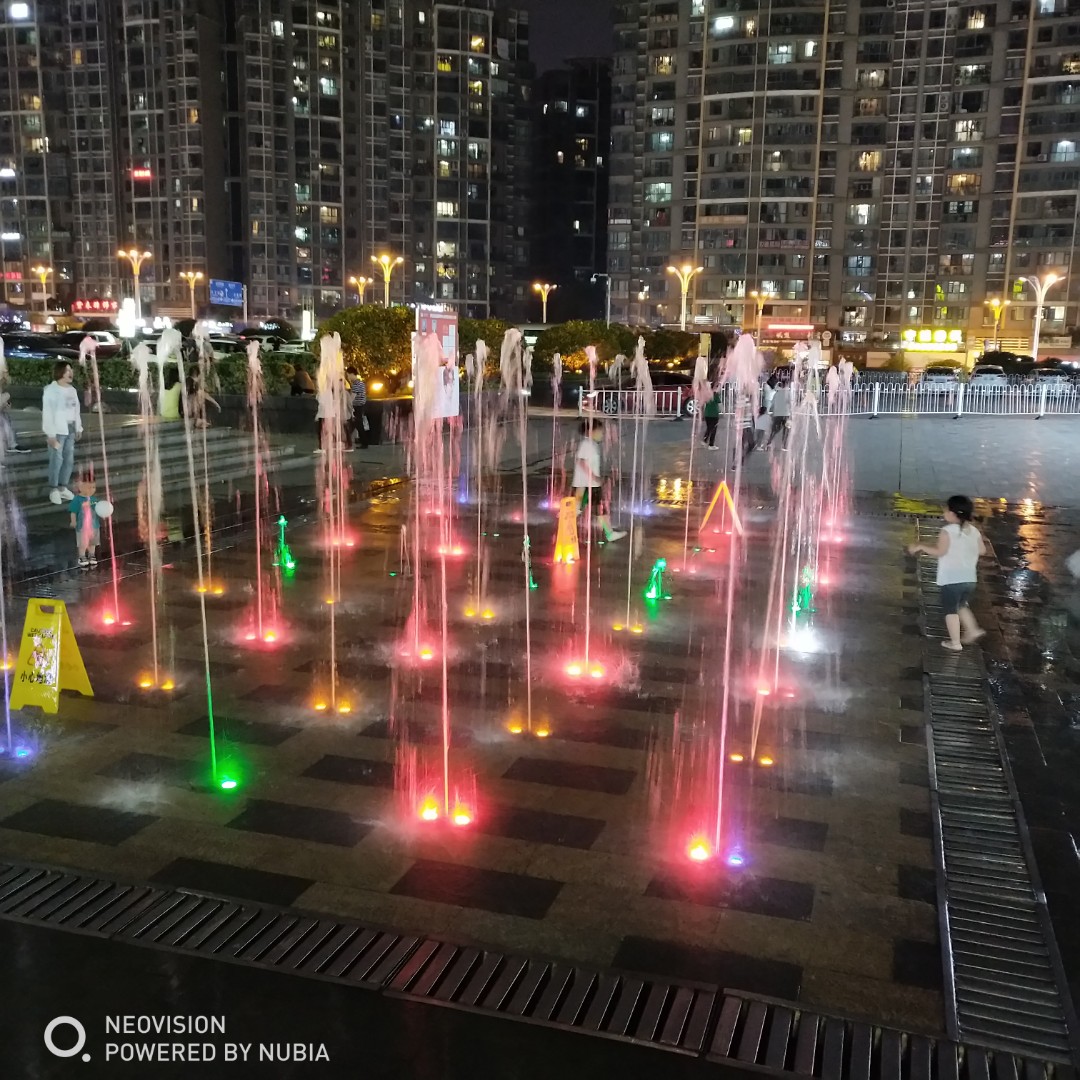 只是满脸欢喜的看着另外两个小朋友在喷泉中央嬉戏,那两个小朋友衣服都湿透了。