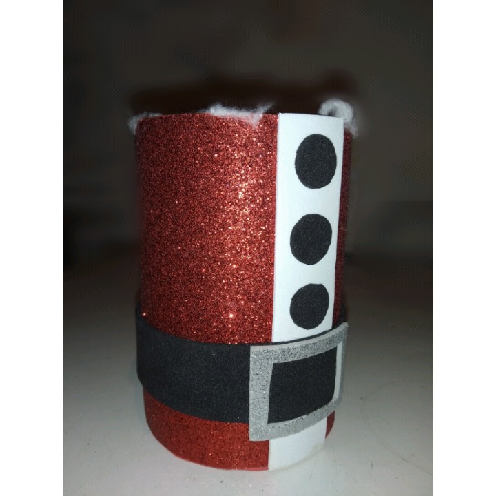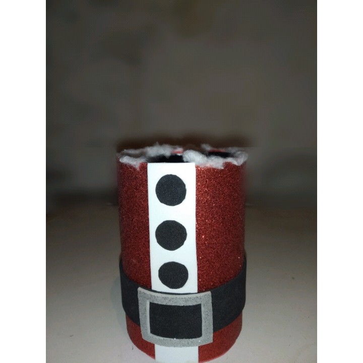 Es muy bonito, tipo la vestimenta de Santa (Papá Noel) y es una buena idea para mantener nuestros lápices, colores, crayones y demás cosas en un perfecto orden.