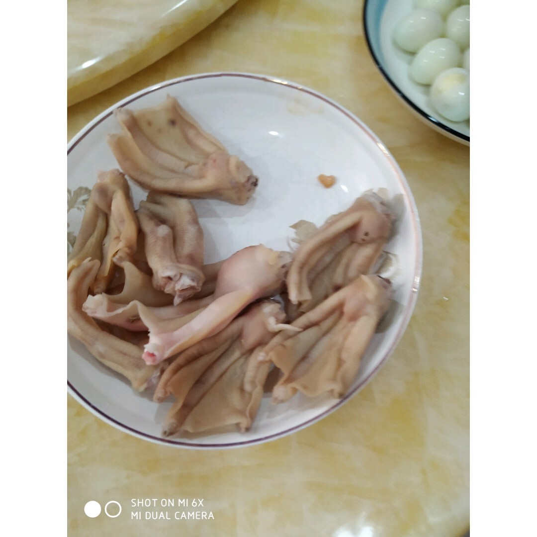 1)先把鸭掌切成只剩下指掌可用