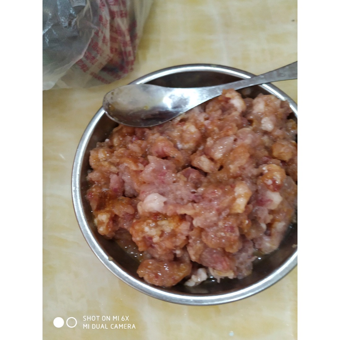 2)准备肉馅和鹌鹑蛋备用
