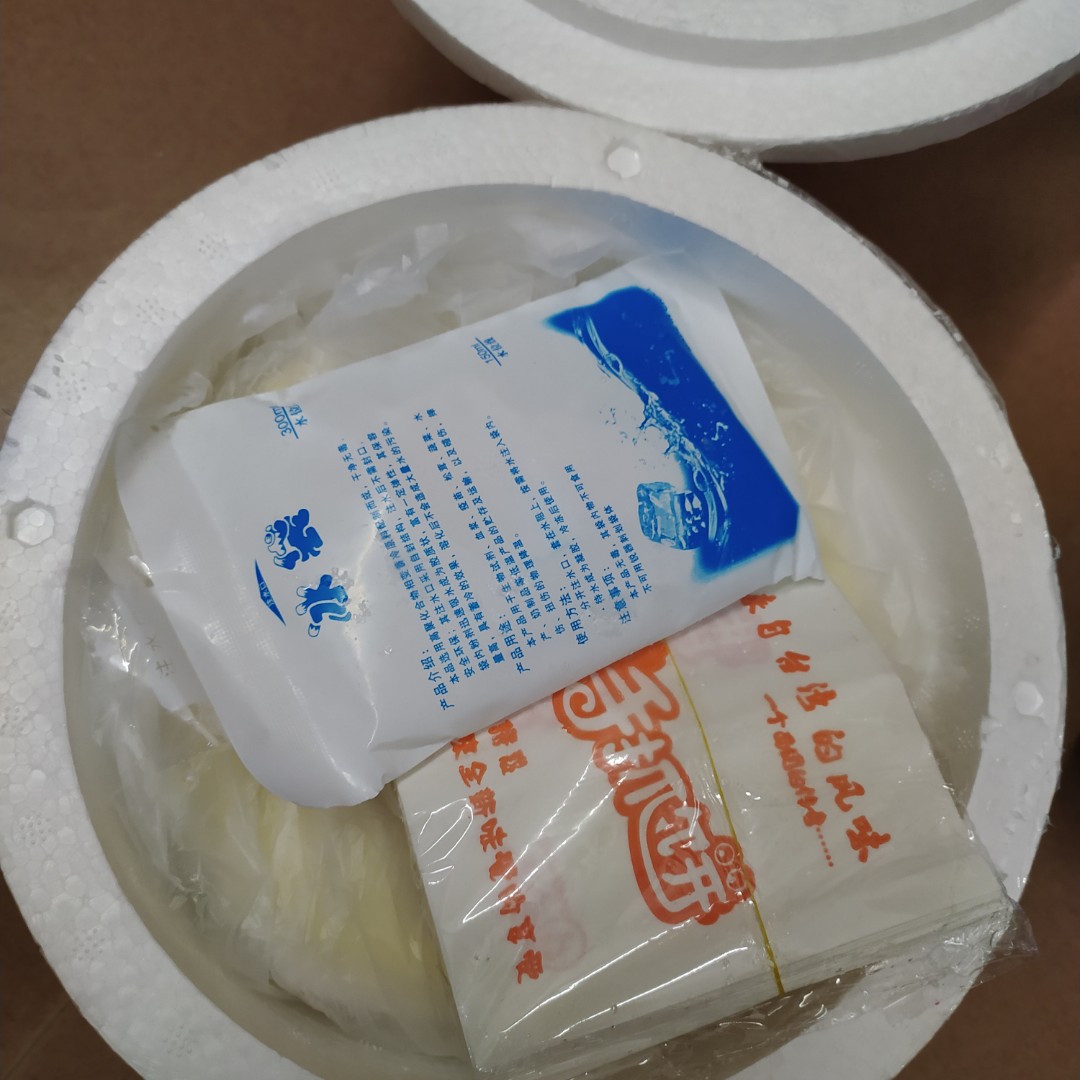 打开盒子,里面冰袋的冰还很硬,看了下发货地,原来是中山市,天气也是原因之一吧,最近最高温度才16度,太冷了。