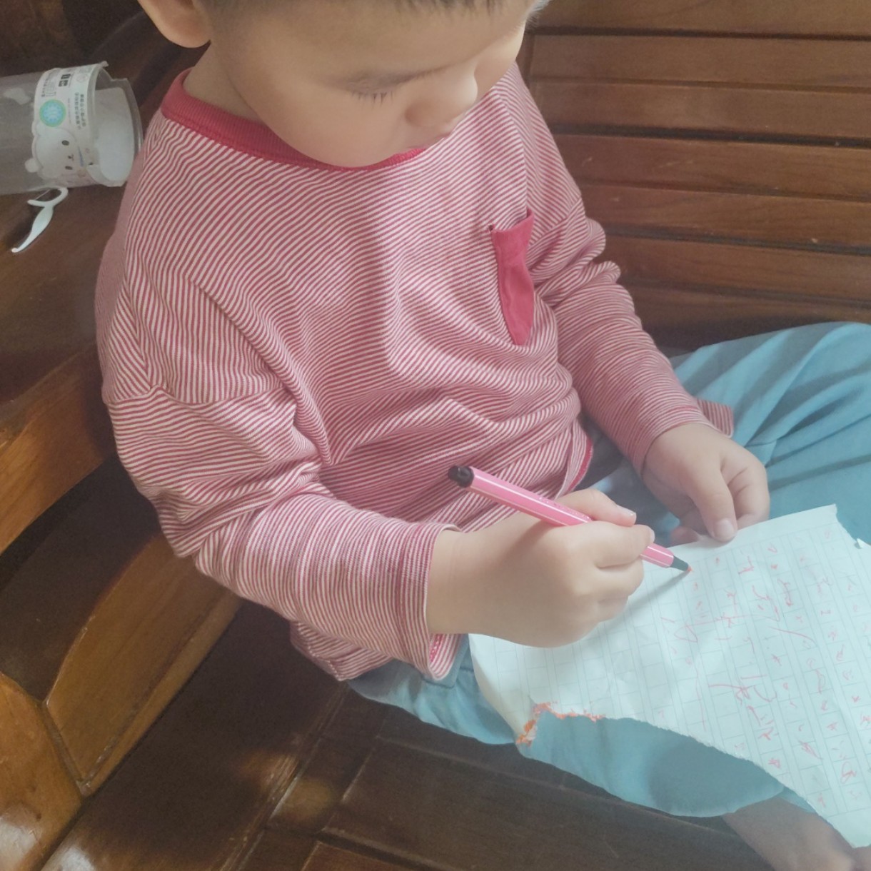 这小子是真到了上学的年龄了,每天都喊让我陪他玩,干点啥都得带上他才肯,拿起笔就是无字天书,他自己都看不懂吧😂