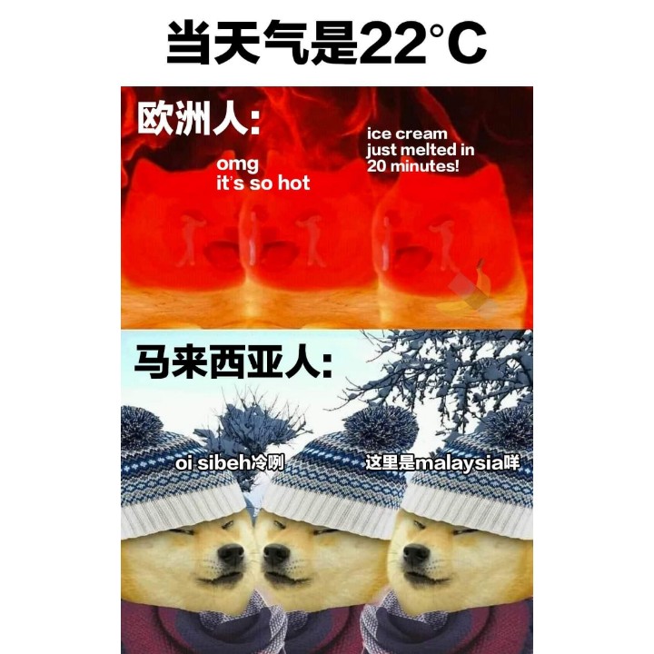在吃早餐时在面子书上发现了一张图写着欧洲天气22 度大家都觉得特别的热可是在马来西亚这个度数大家都觉得冷。我突然怀疑未来我是不是就不能去旅行了lol 比较在这边一下起雨来讲包得像粽子那样了 😂😂