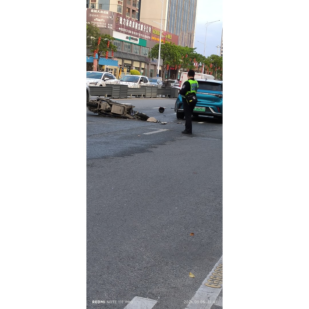 昨天在下班的路上,看到一则交通事故。一辆摩托车被一辆小轿车撞了,整个摩托车的前车架全部都散架了。看这阵势,估计伤的不轻。人是没有看到,应该都送去医院了。
