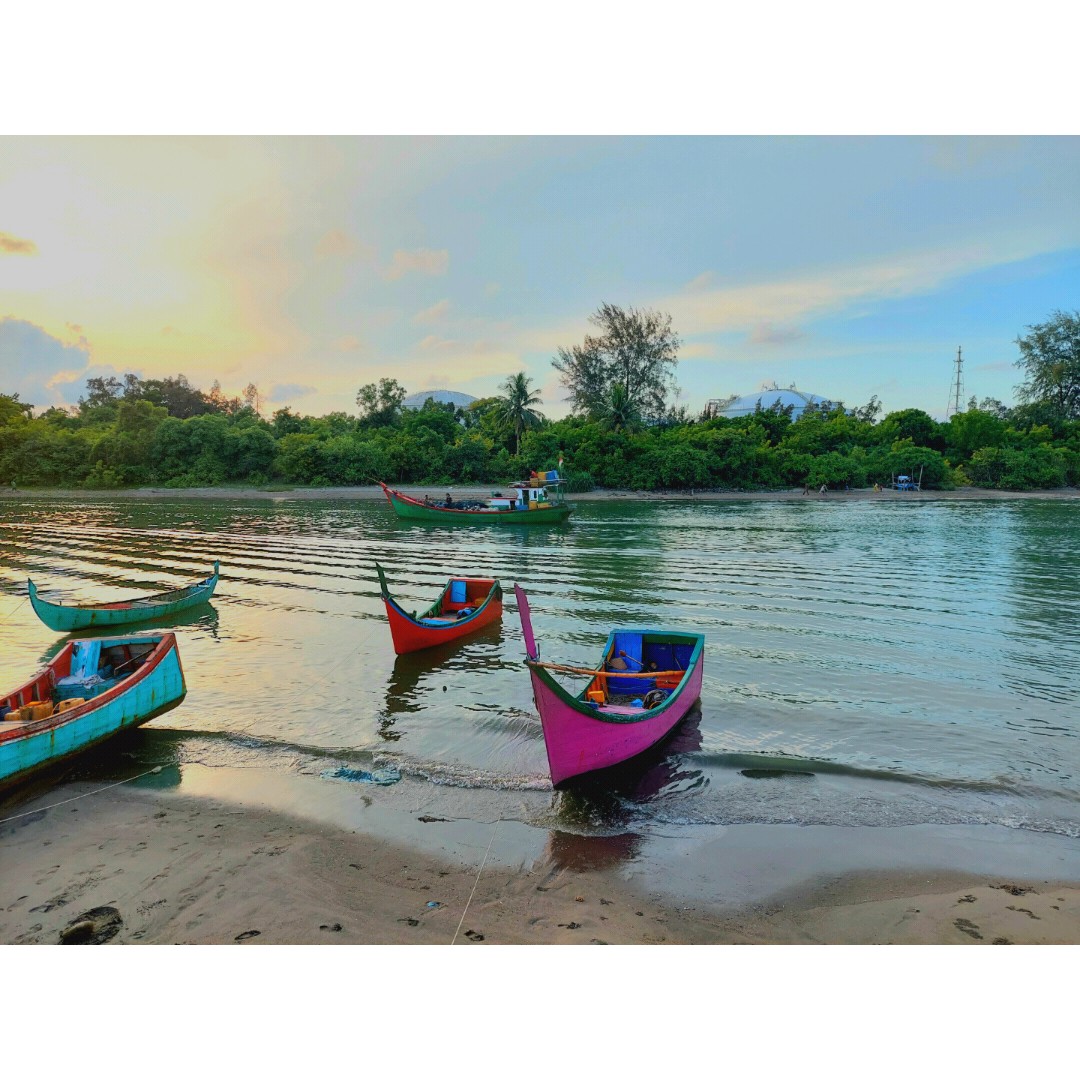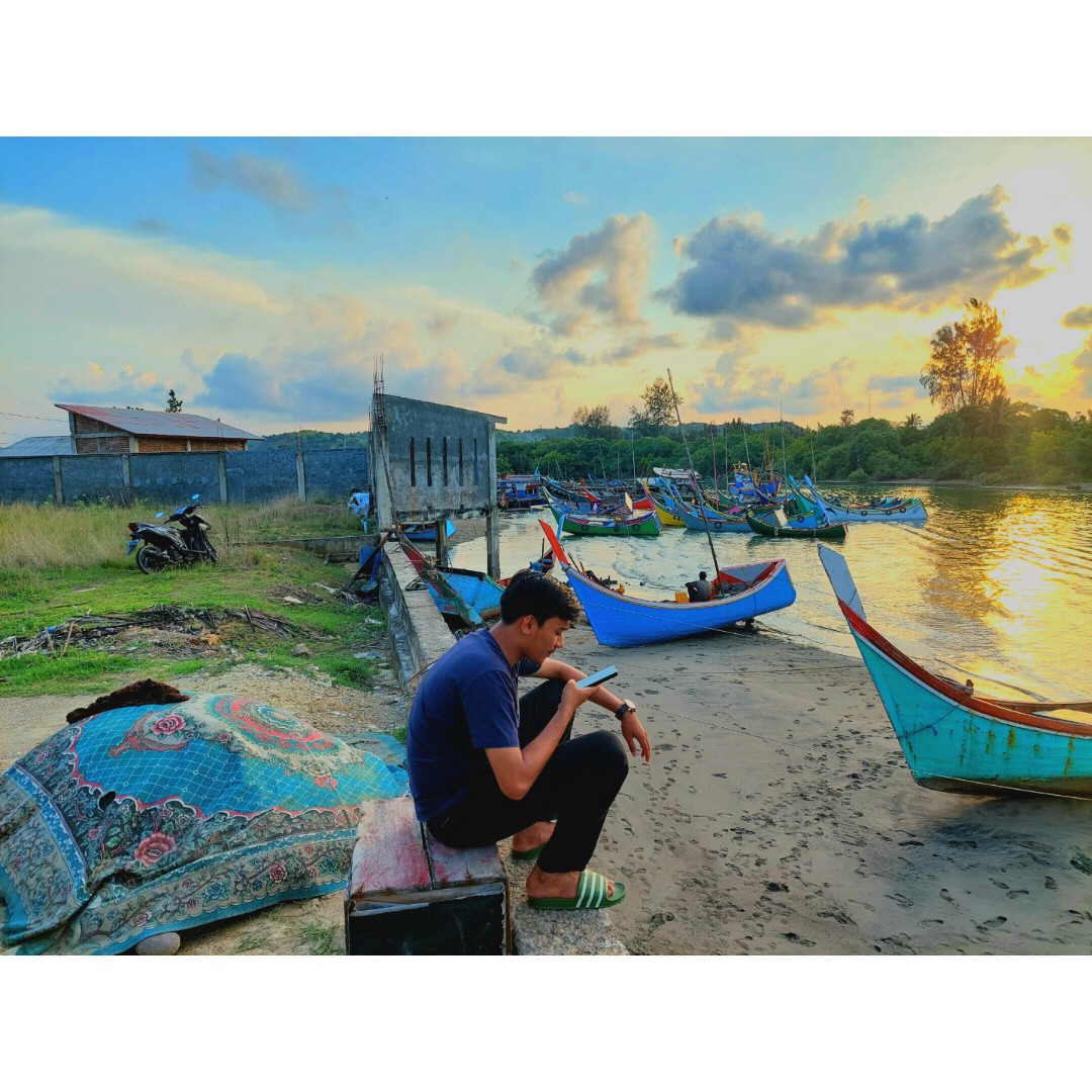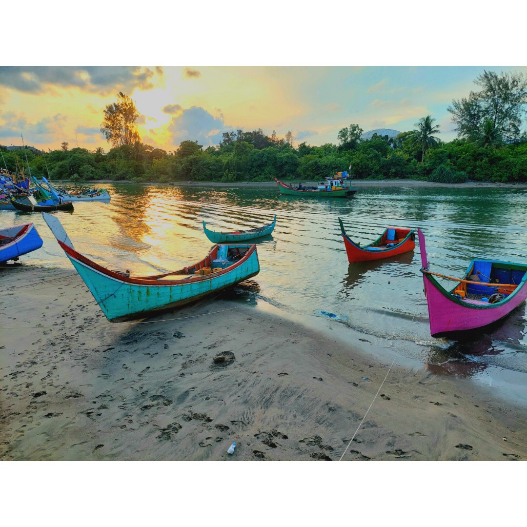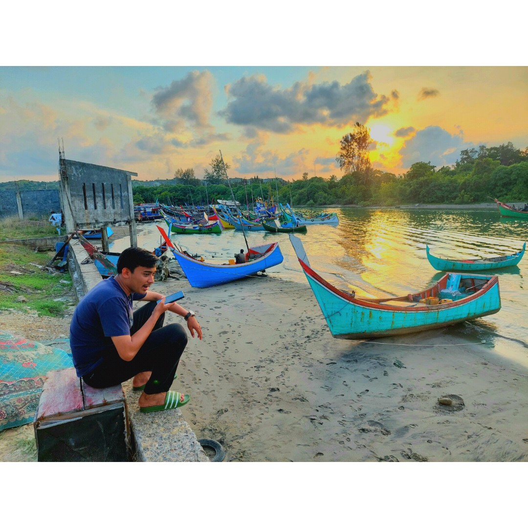Di sana terlihat banyak sekali perahu dan kapal nelayan yang di parkir karena baru pulang dari laut setelah mencari ikan, Dengan adanya kapal dan perahu tersebut membuat sunset semakin terlihat indah.