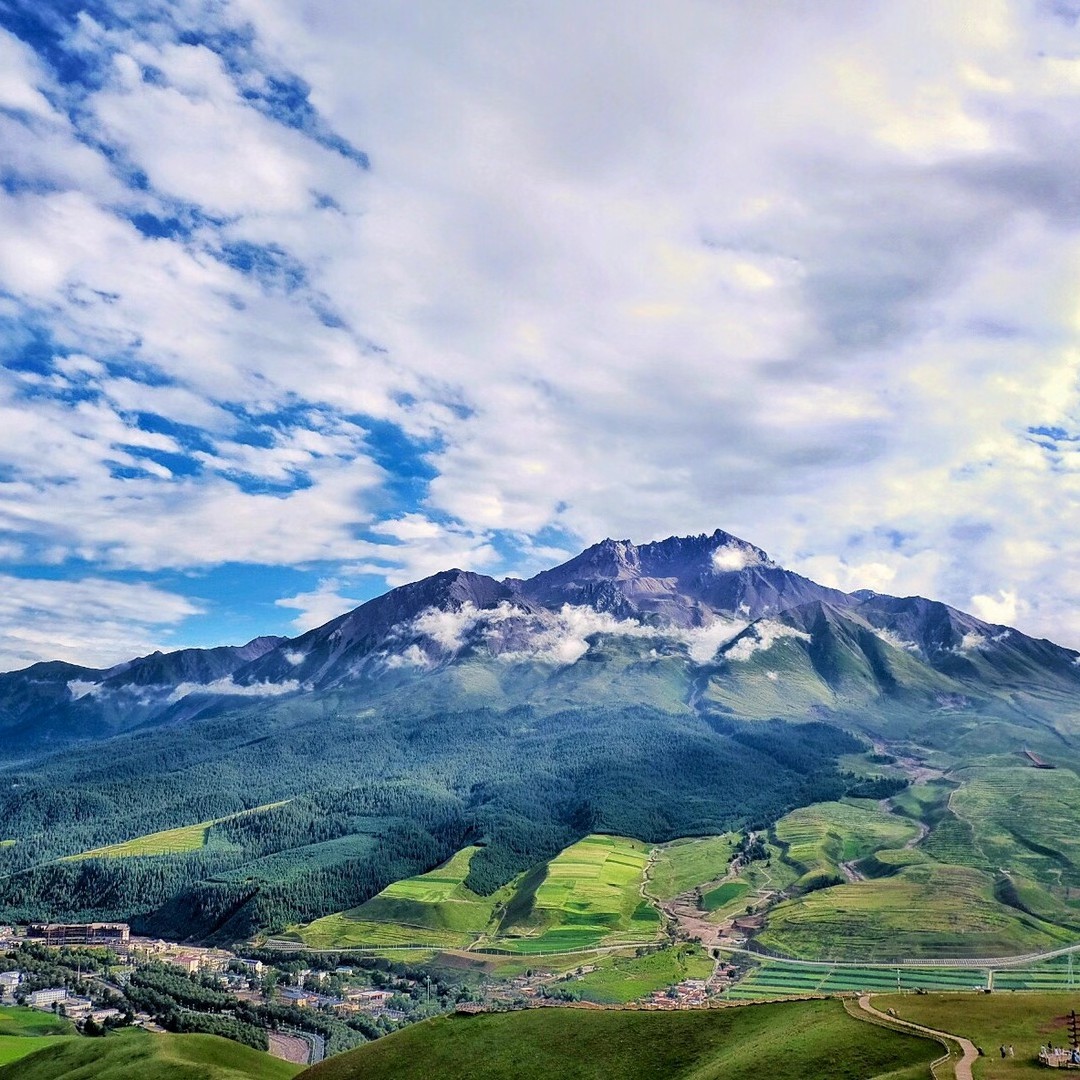 卓尔山6-8月时草原翠绿欲滴,山体裸露处都是赤红的砂岩,与碧绿的草原层叠交错,景色壮美。山脉两侧的林海、油菜花、村庄、县城,景色层次感很强,是摄影师的最爱。