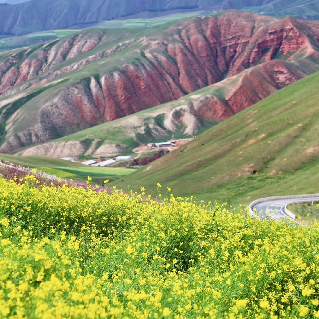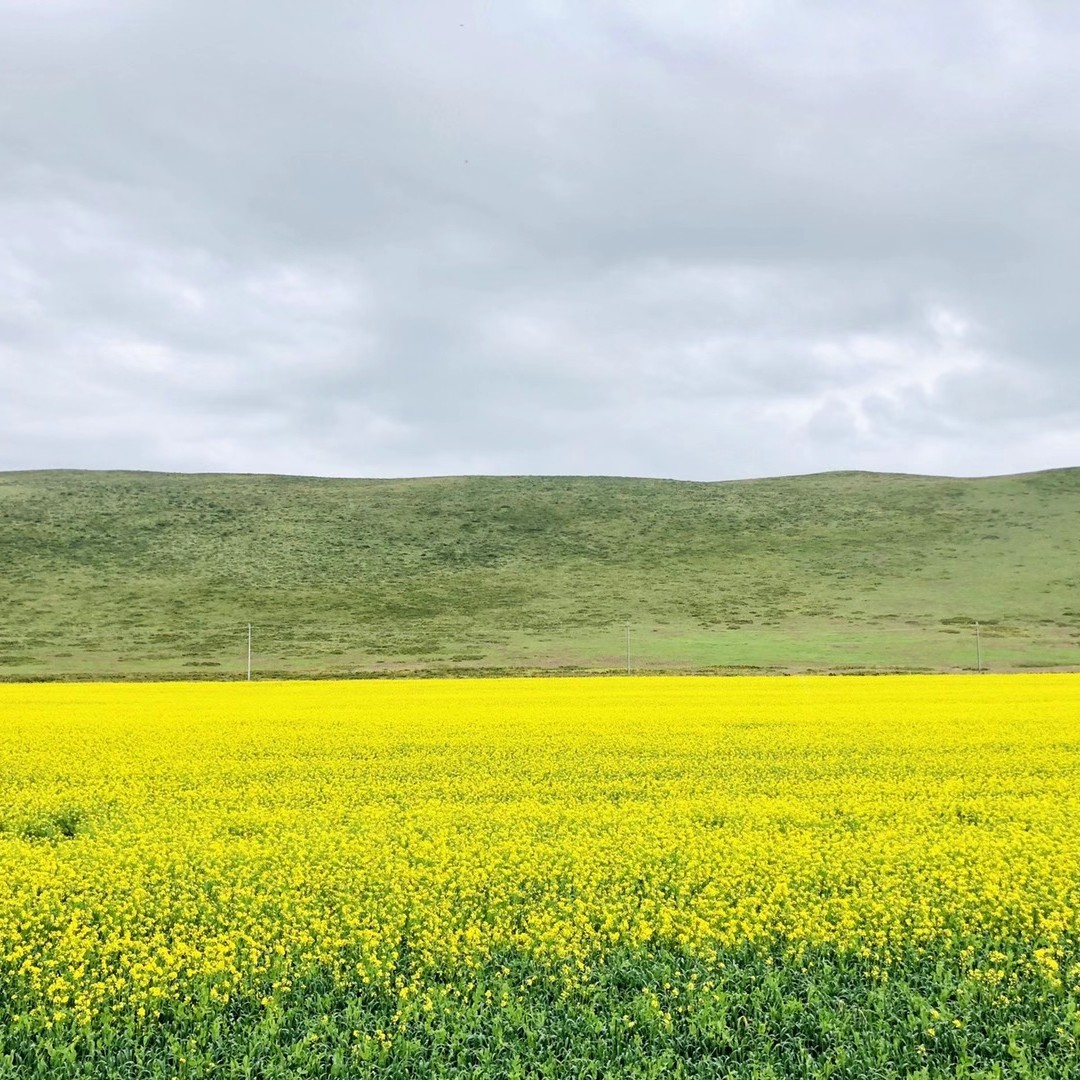 门源县盛开绵延几十公里的油菜花,这里也是西北地区主要油料产区。门源的油菜花面积达60万亩,与江南的油菜花相比,极富震撼力。由于田地多向着河道方向倾斜,站在河岸上看,铺天盖地一片金黄,与祁连山遥相辉映。