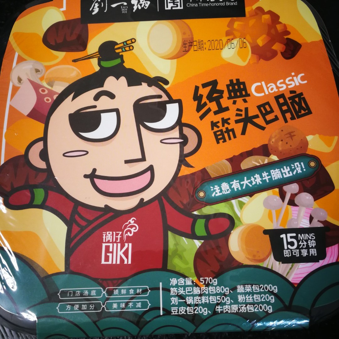 刘一锅筋头巴脑在我们大沈阳很有名的,多年前曾频繁光顾,如今好像没那么火了,不过前段时间推出了袋装速食的筋头巴脑锅,营销做得不错,应该也有不错的销量,这种自热火锅好像刚刚上市,价格很便宜,这样沉甸甸的一大盒,只要十二块五。