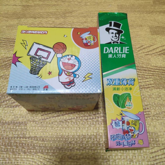 买一支牙膏,赠送“哆啦A梦”夏日元气杯一个。有看我之前文章的朋友都知道,哆啦A梦是我的最爱。