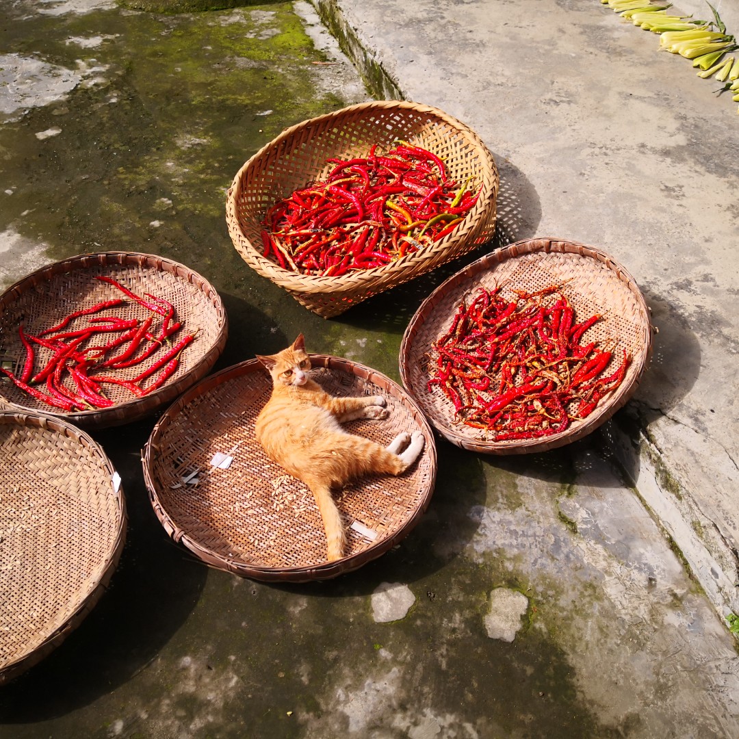 闲适的周末生活从清爽的早上开始。路过田边静下心、低下头去仔细观察露珠,发现了不一样的世界,是每天车水马龙不曾留意过的世界。不待露珠散去蜘蛛已经织好了大网静静的等待他的早餐,别样的暴力美学。继续朝前走经过灌溉渠,惊喜的发现水草也可以结果、如绿丝绦般柔顺的水草在水波的推动下显得极其婀娜,但是突然脑海里面却想起绿毛水怪这篇文章。。。还好树荫下的鸭子及时出现打断了我这奇怪的思绪。继续朝前走我看到皂角树本皂,女皇大人微信群问小伙伴可有人认识此物,有人答曰:树屎。路过某家院子三大缸子豆瓣正在烈日下发酵,我的口水瞬间就流了下来,两腮微痛。最后回家,奉上咪咪自晒图,这个是要把自己合着辣椒一起炖了的节奏啊。岁月静好、不需要高谈阔论、不需要日进斗金、只需要恬淡知足。