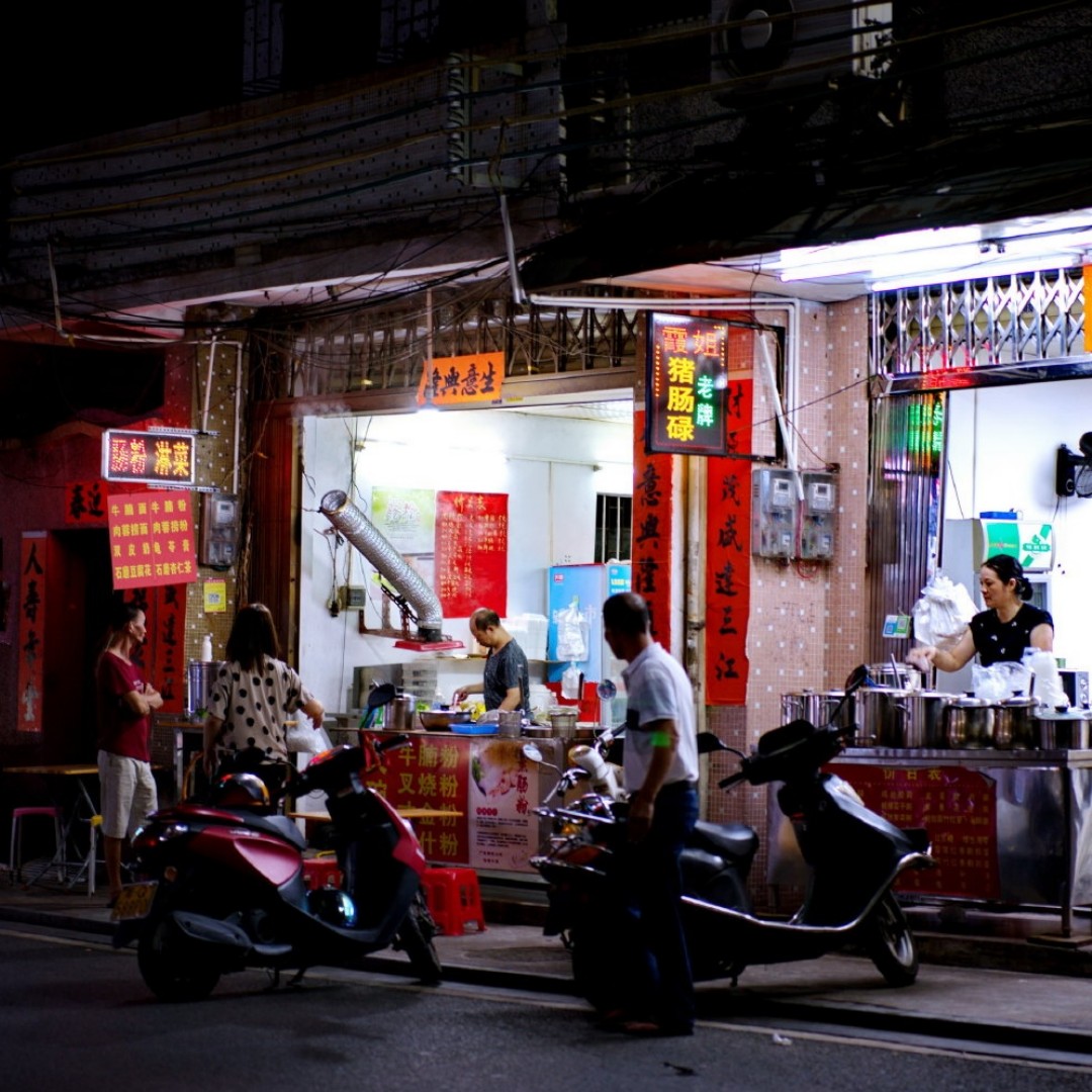 每到晚上,人来人往的食客再加上车辆向这边经过,使这里的气氛添了些温暖,有时间侯在这堵上十来分钟也是常见的事。