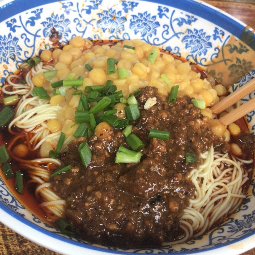 午间没在家吃,到一小面馆里。点了份叫豌杂干拌面。