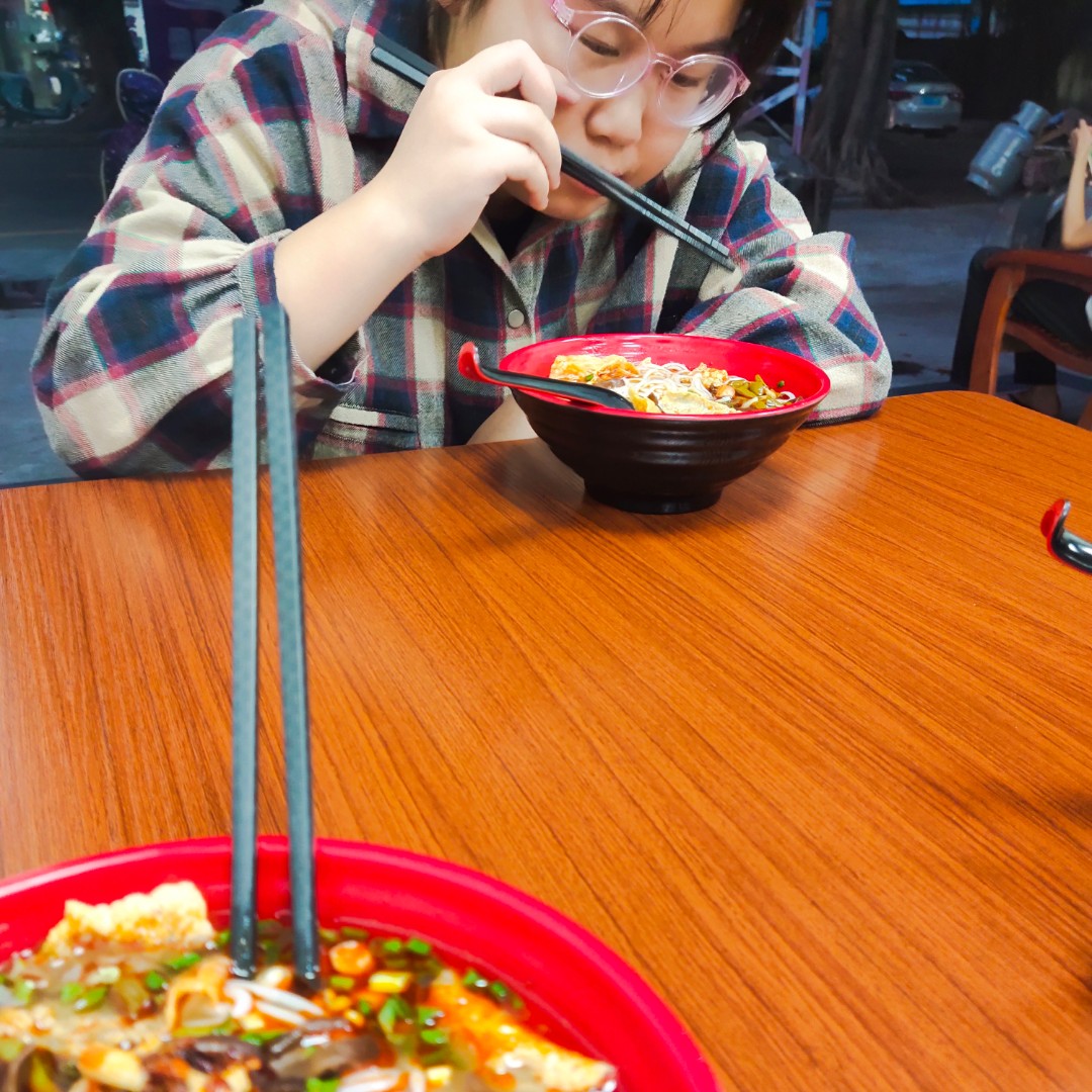今天下午我女儿给我说,她想吃螺丝粉,于是我带他俩来到安良五村这家新开正宗螺丝粉店吃,走了20分钟左右,哈哈,点了两份原味螺蛳粉和一份卤蛋螺丝粉,老板一端上来哇哦口水流出来了😂真的很好吃,酸酸辣辣很过瘾。一大碗很快吃完,哈哈,我女儿说,下次还来,好吧,也不贵原味一大碗才8元,加个卤蛋的才10元,比横岗商业街吃便宜多了。
