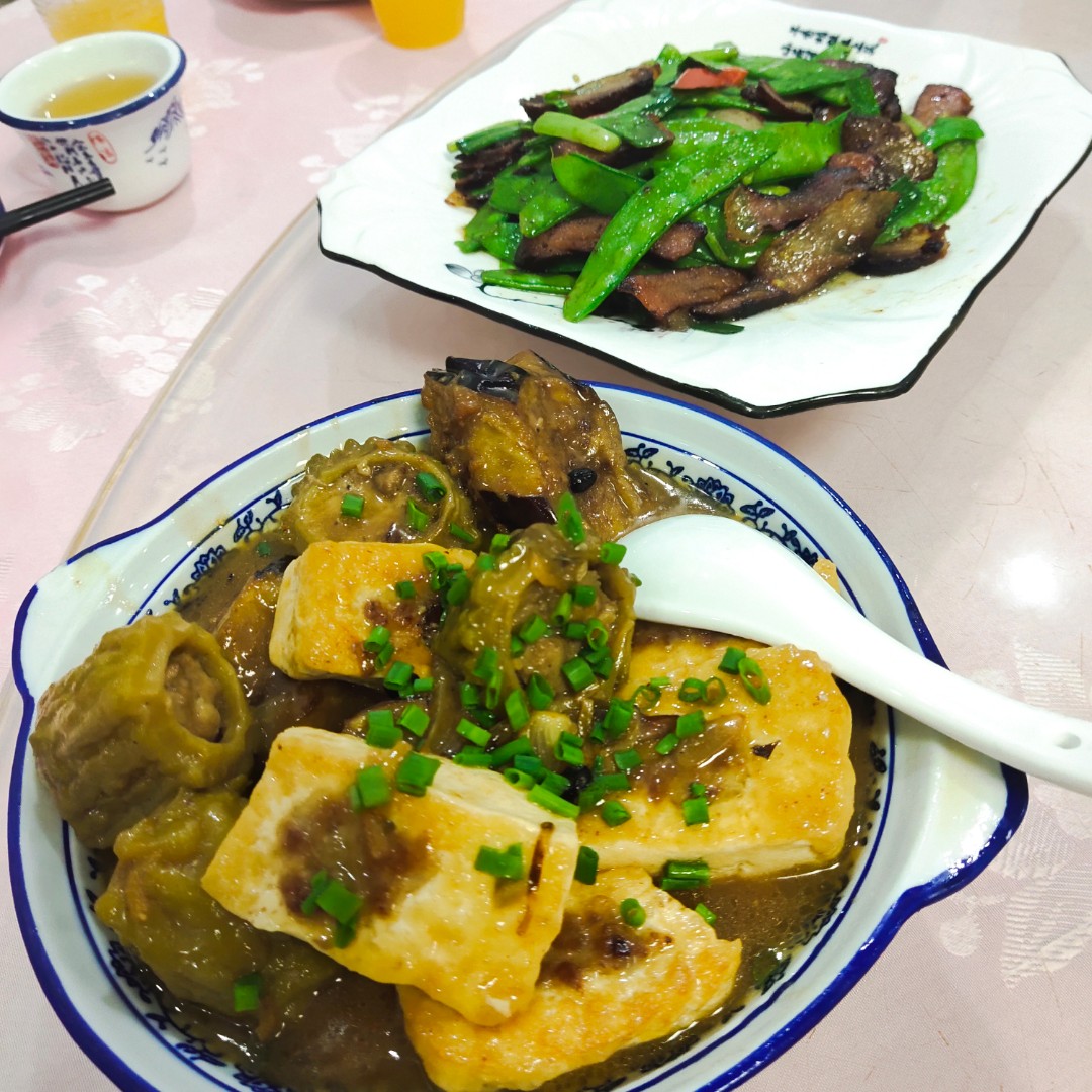 今晚的菜我非常喜欢吃,我老板点的菜,海鸥请的客,客家风味的菜,我这位湘妹子也非常爱吃,晚上吃好饱,特别是那盘酿三宝,最先吃完的😂,今晚的胃有点超负荷了,哈哈